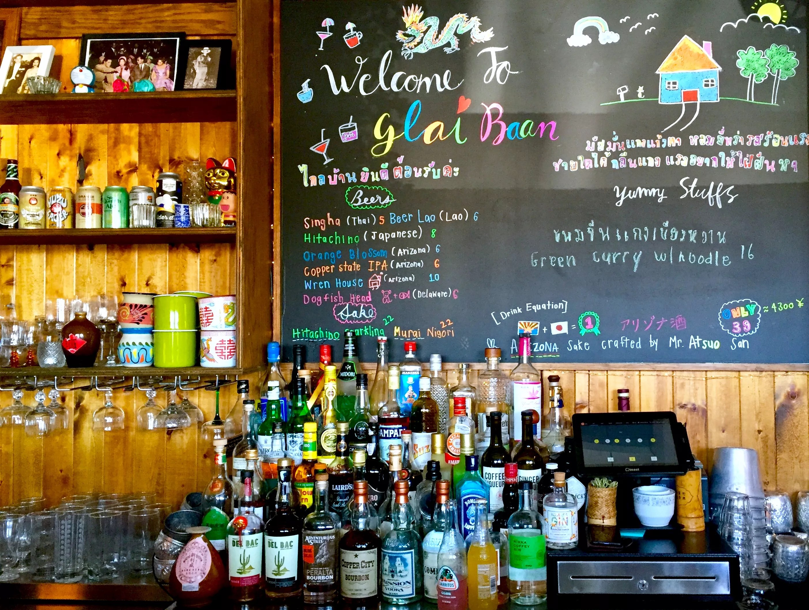 The colorful bar at Glai Baan is the perfect solo backdrop.