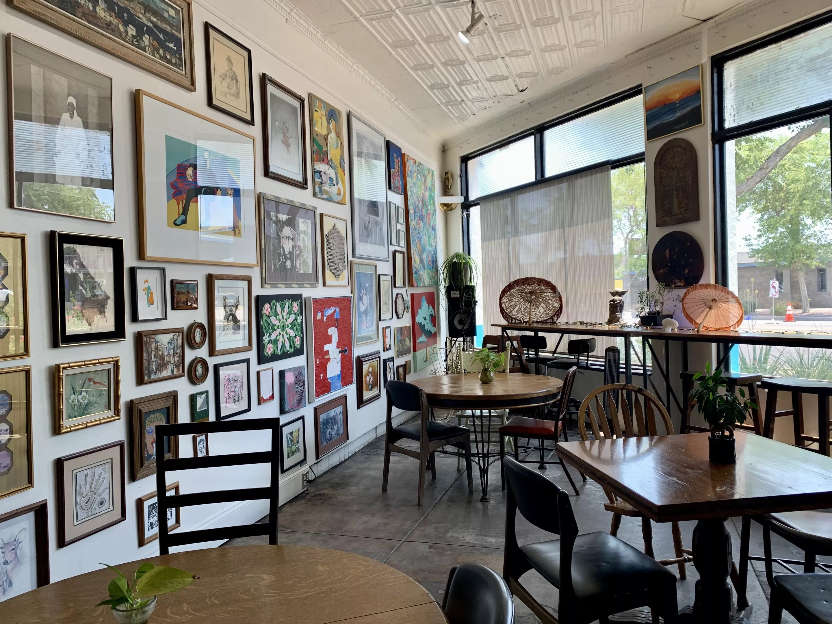 1506 Grand Ave. The lovely, quirky, laid-back Trans Am Cafe, tucked in the intersection of Roosevelt Street, 15th Avenue and Grand Avenue, has everything you could want in a coffeehouse. Big windows. Mismatched vintage tables of various sizes. Art covering the walls from floor to ceiling. A chess set. Kind staff. Soft-spoken patrons lounging and doodling in sketchbooks. Craft beer at night. And of course, good, strong coffee. That part is key. Not only does Trans Am Cafe provide Phoenix artists a gallery space and support other local creative endeavors, it also provides us the ideal space in which to drink a nice espresso, have a bagel sandwich and stare wistfully out a big window. What more can we ask for from a coffeehouse?