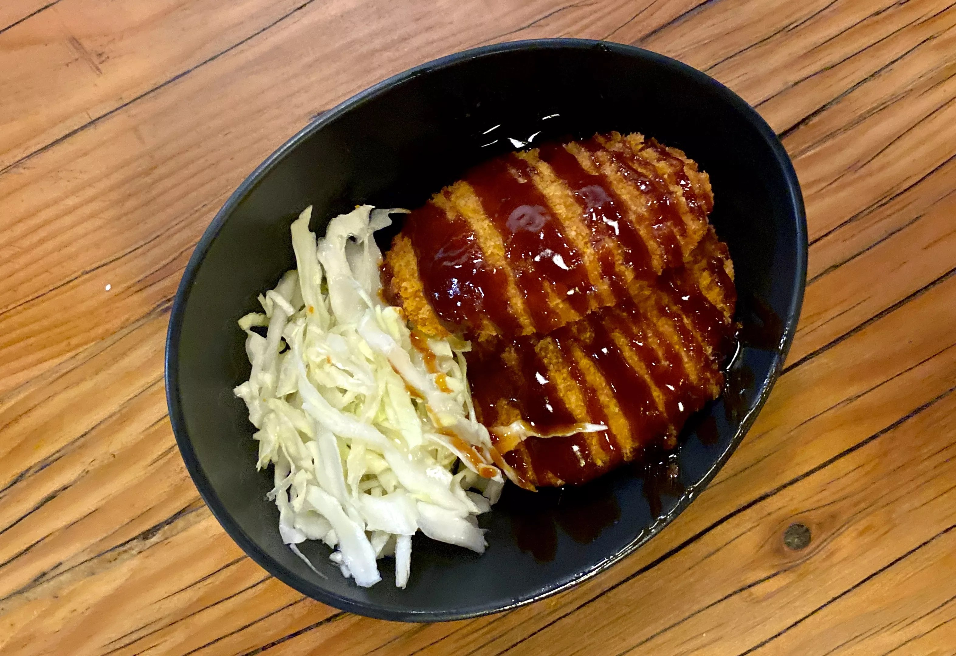 Crispy veggie croquettes drizzled in tonkatsu sauce.