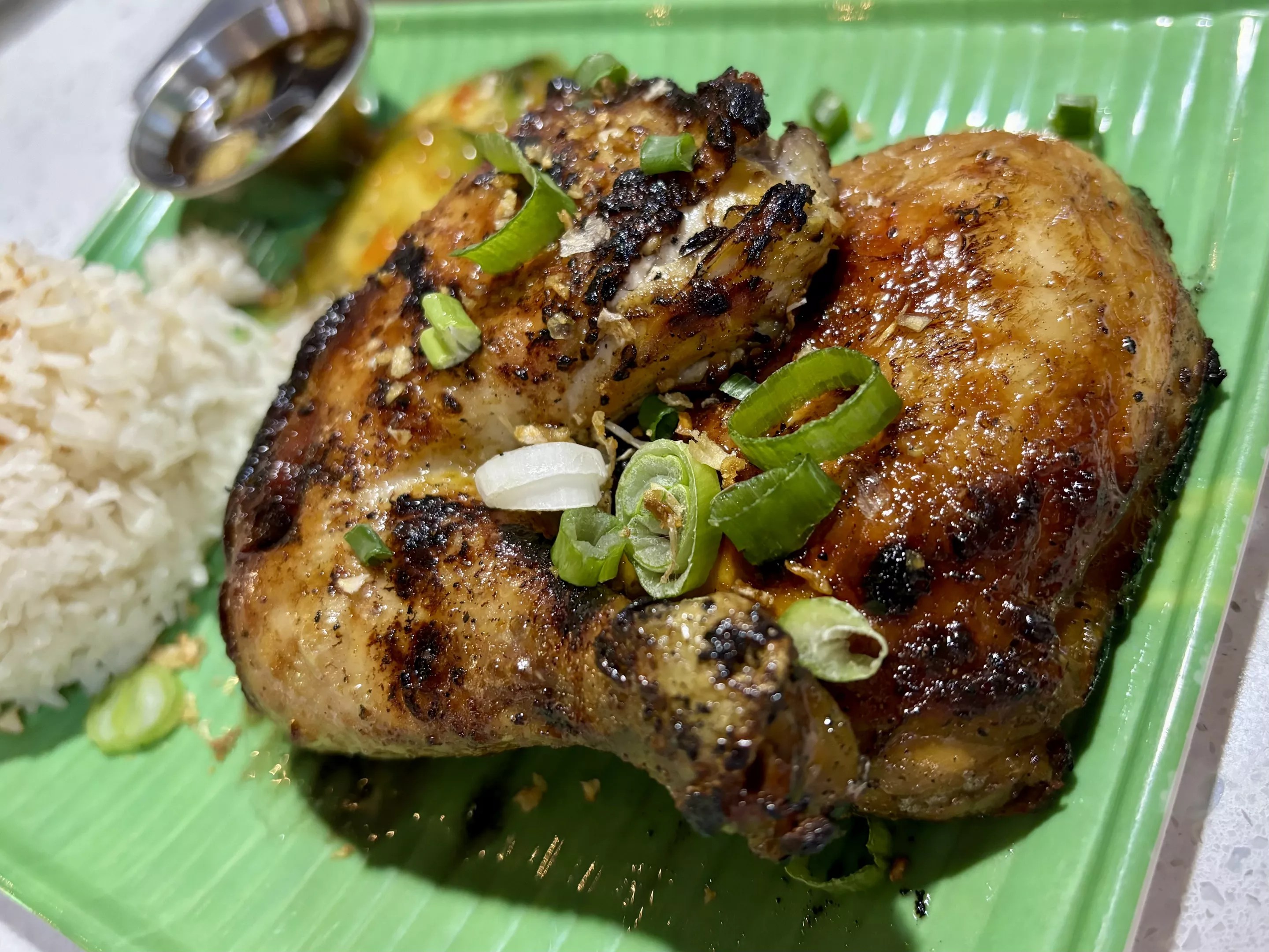 The aromatic flavors of lemongrass and ginger permeate perfectly grilled chicken at Tambayan.