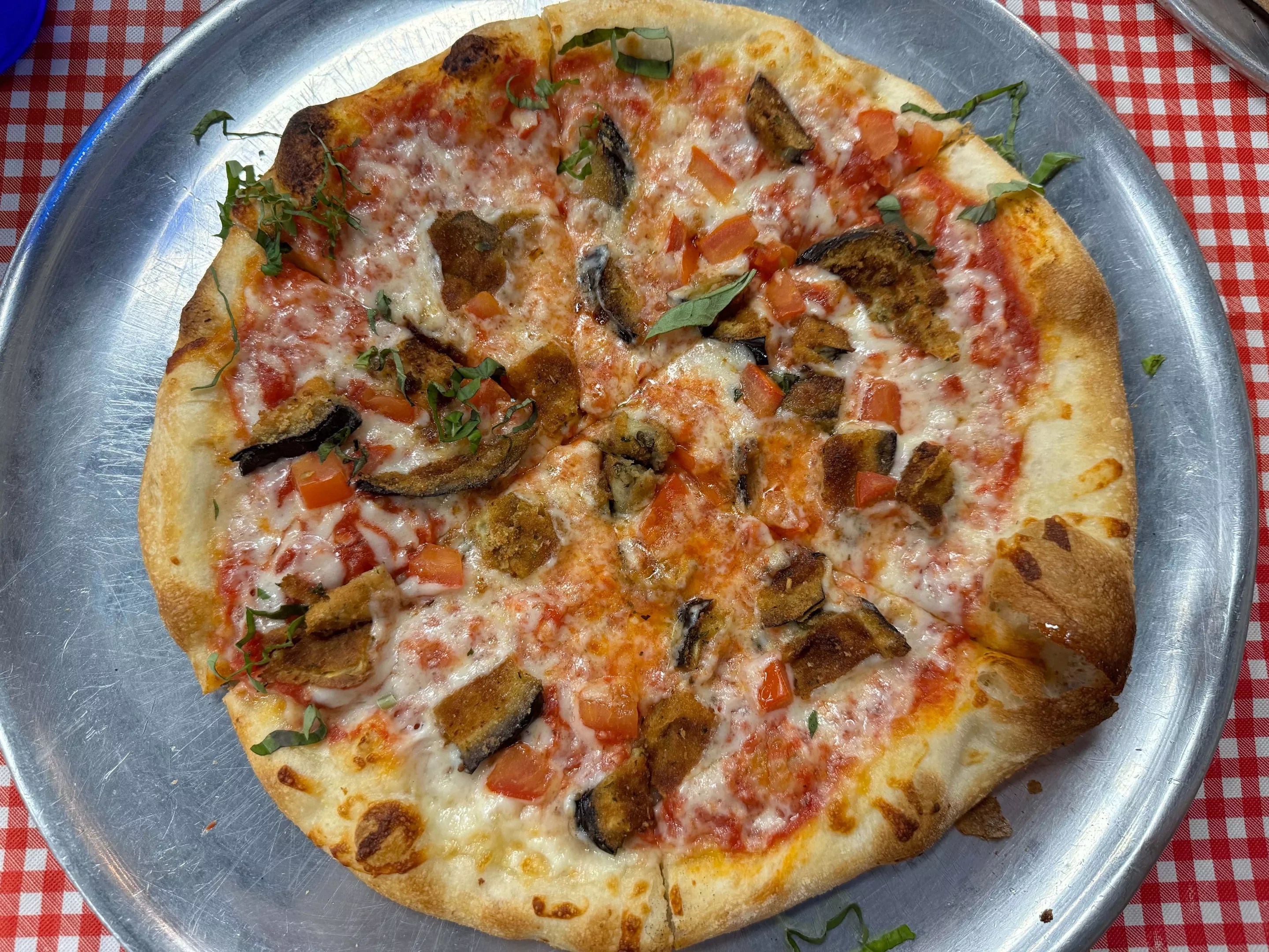 The New Yorker is a vegetarian pie from Yo Pauly’s that infuses the taste and texture of eggplant parmesan, down to crispy chunks of eggplant.