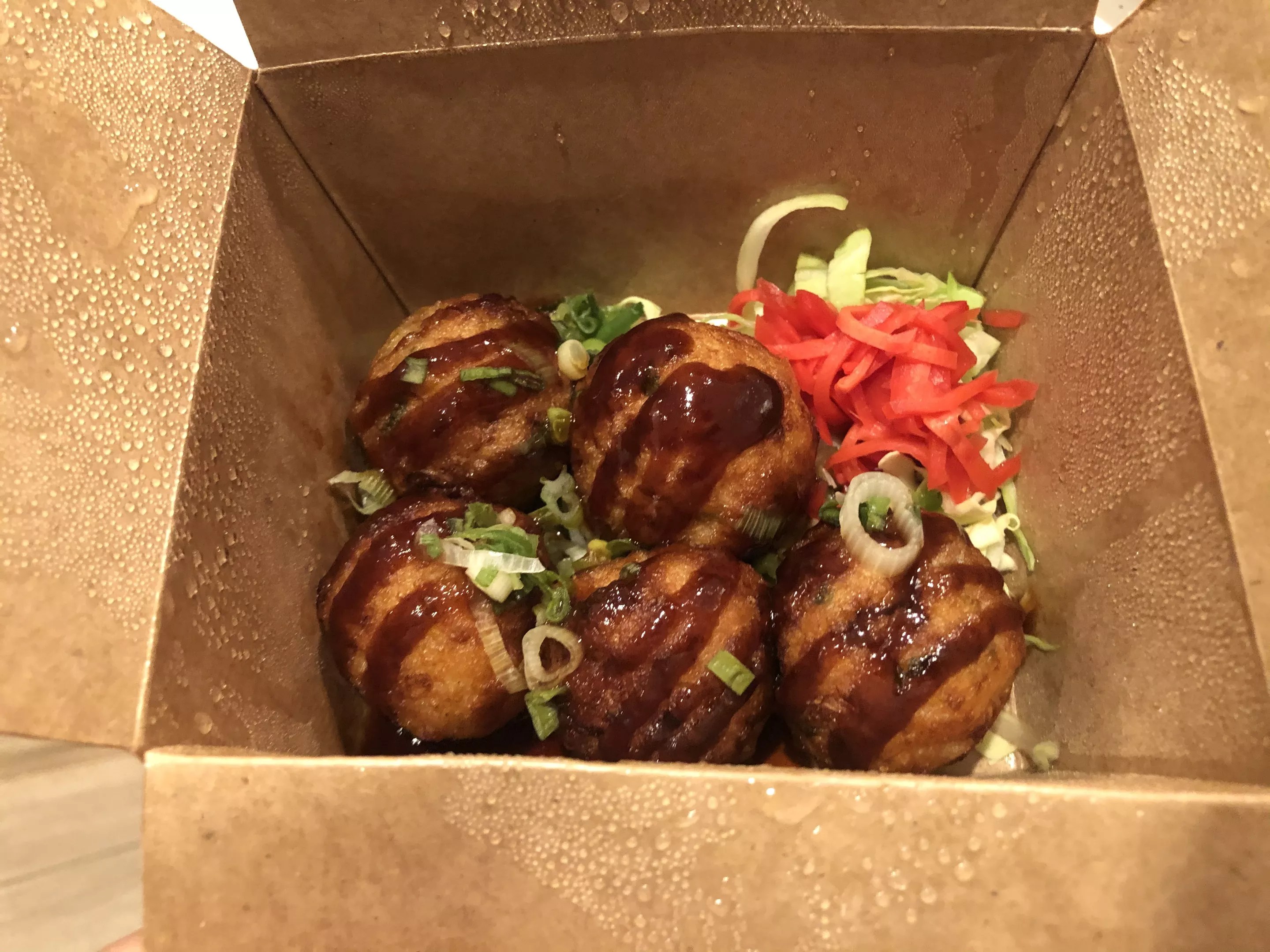 Piping hot takoyaki, one of life’s great nocturnal pleasures, these from Ramen Kagawa.
