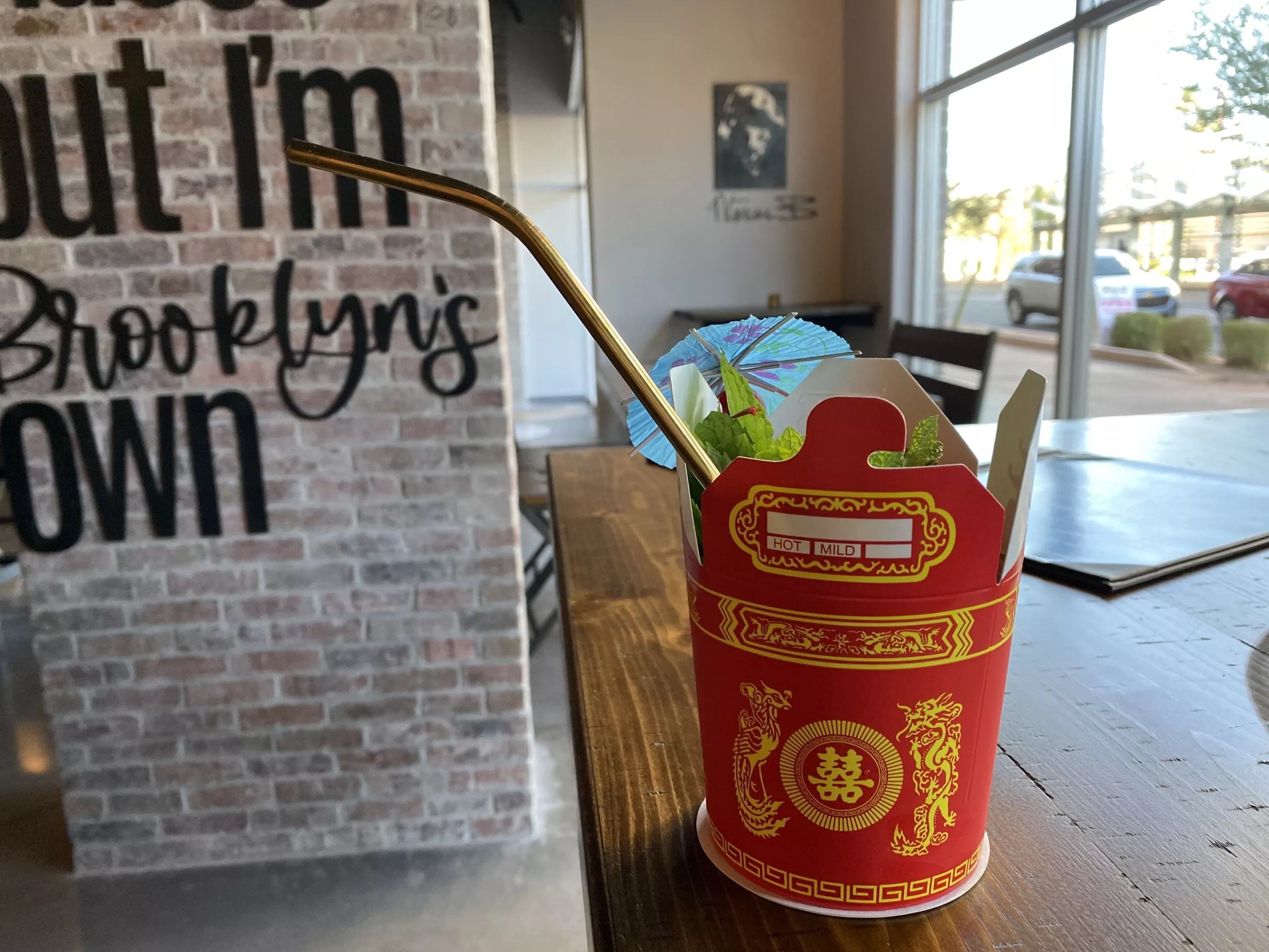 The La Di-Da-Dis, deviled eggs topped with grilled Cajun shrimp, burst with flavor. The Wu-Tang cocktail, served in a Chinese takeout container, is a watermelon mai tai topped with fresh mint, a blood orange slice, and a cocktail umbrella: a sweet boozy punch.