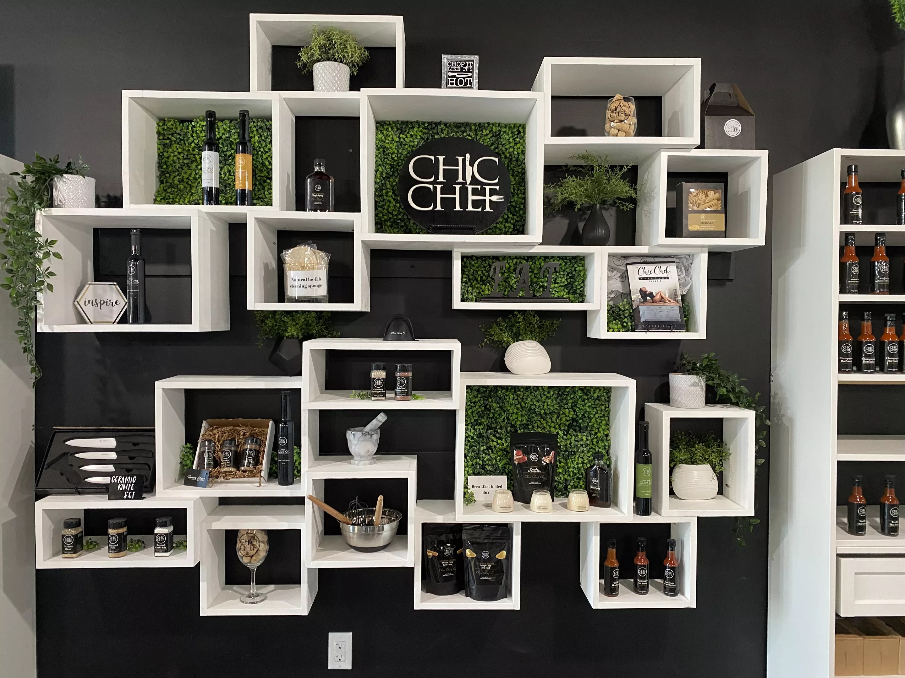 She opened Chic Chef Marketplace in June 2021, adjacent to her now-open midtown restaurant, to sell her olive oils and spice blends in addition to other goods like chocolate balsamic vinegar, Chardonnay sea salt, bourbon whiskey barbecue sauce, and Jamaican jerk popcorn.