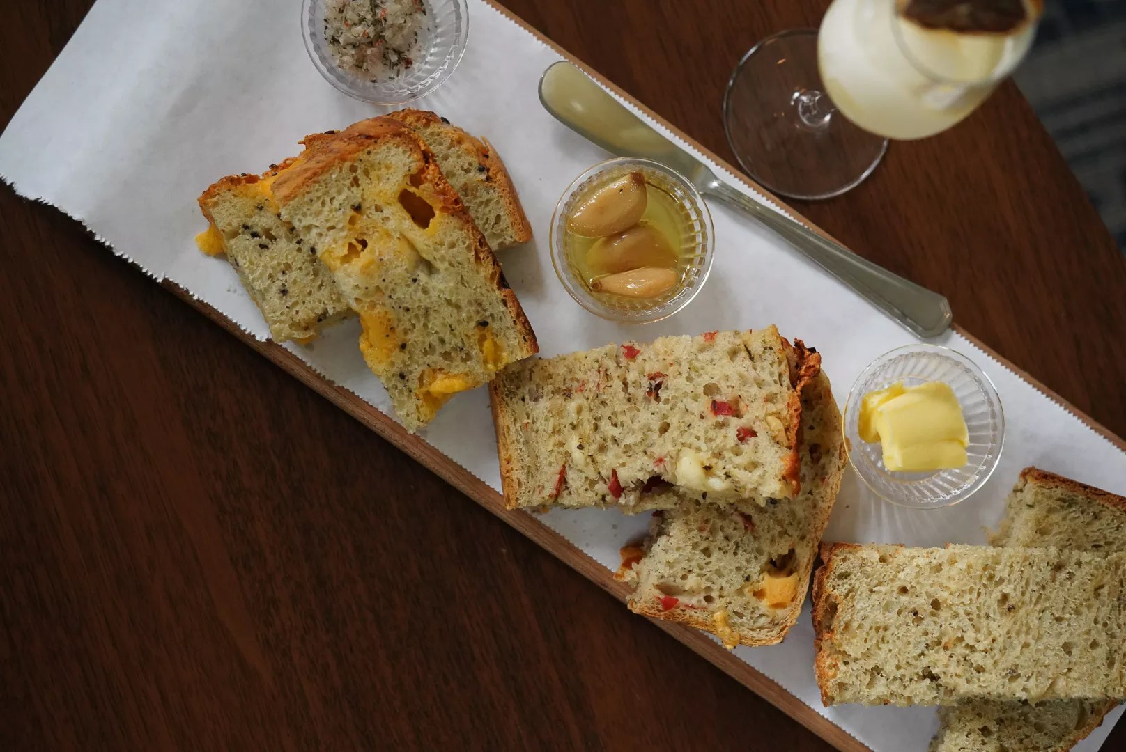The Fates Bread Co. breads are served hot with a side of garlic confit oil, grass-fed butter and seasoned salt at Garden Bar.