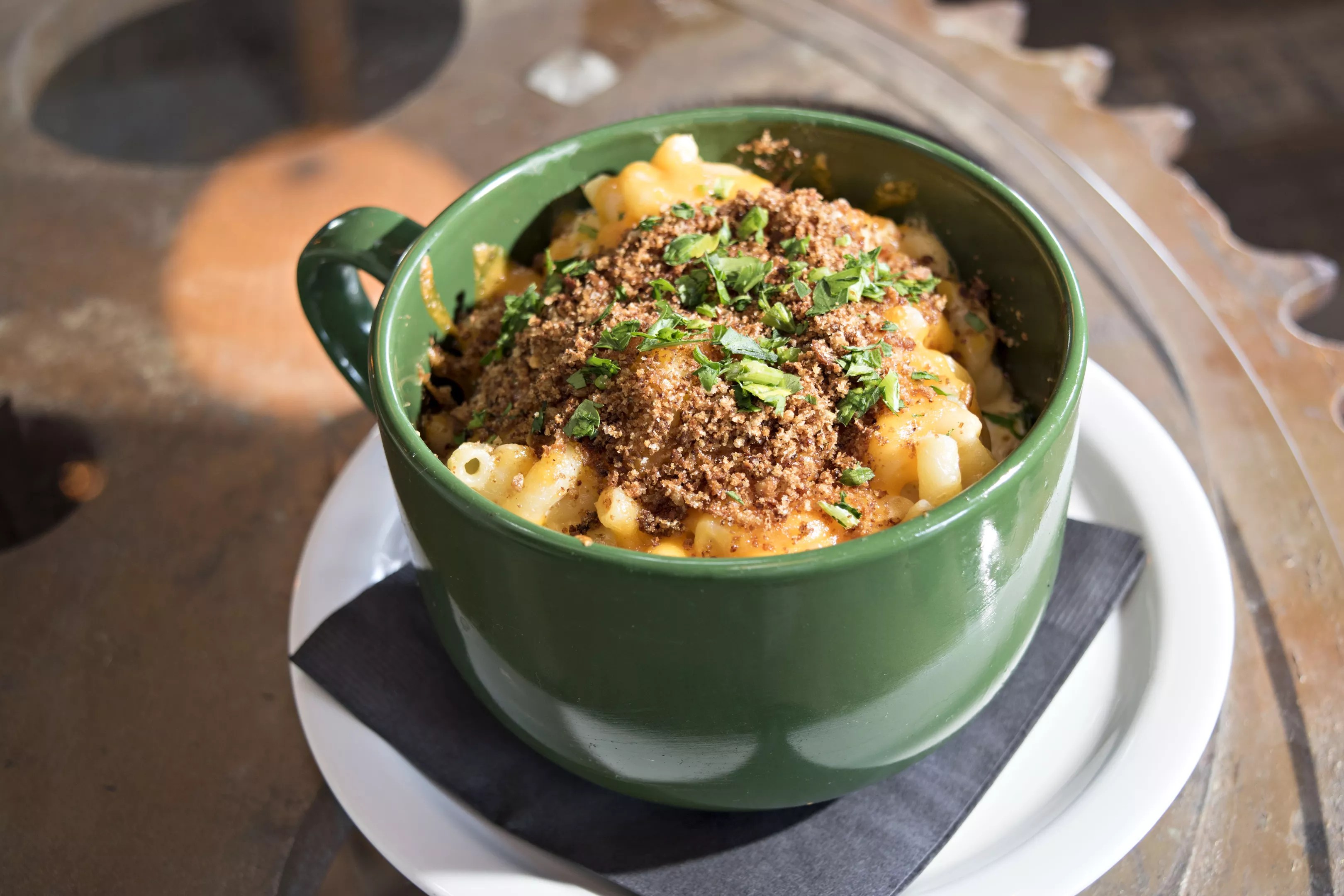 There’s also the Mac of the Moment, a chef-driven rotating special that’s very much worth the upcharge. In past months, the mac and cheese special has featured creative ingredients like Hot Cheetos and shredded Brussels sprouts. More recently, the Mac of the Moment involved a bowl of creamy penne pasta, tossed with succulent, beefy tendrils of braised short ribs, the meat dampened and slightly sweetened by the juice of roasted red peppers.