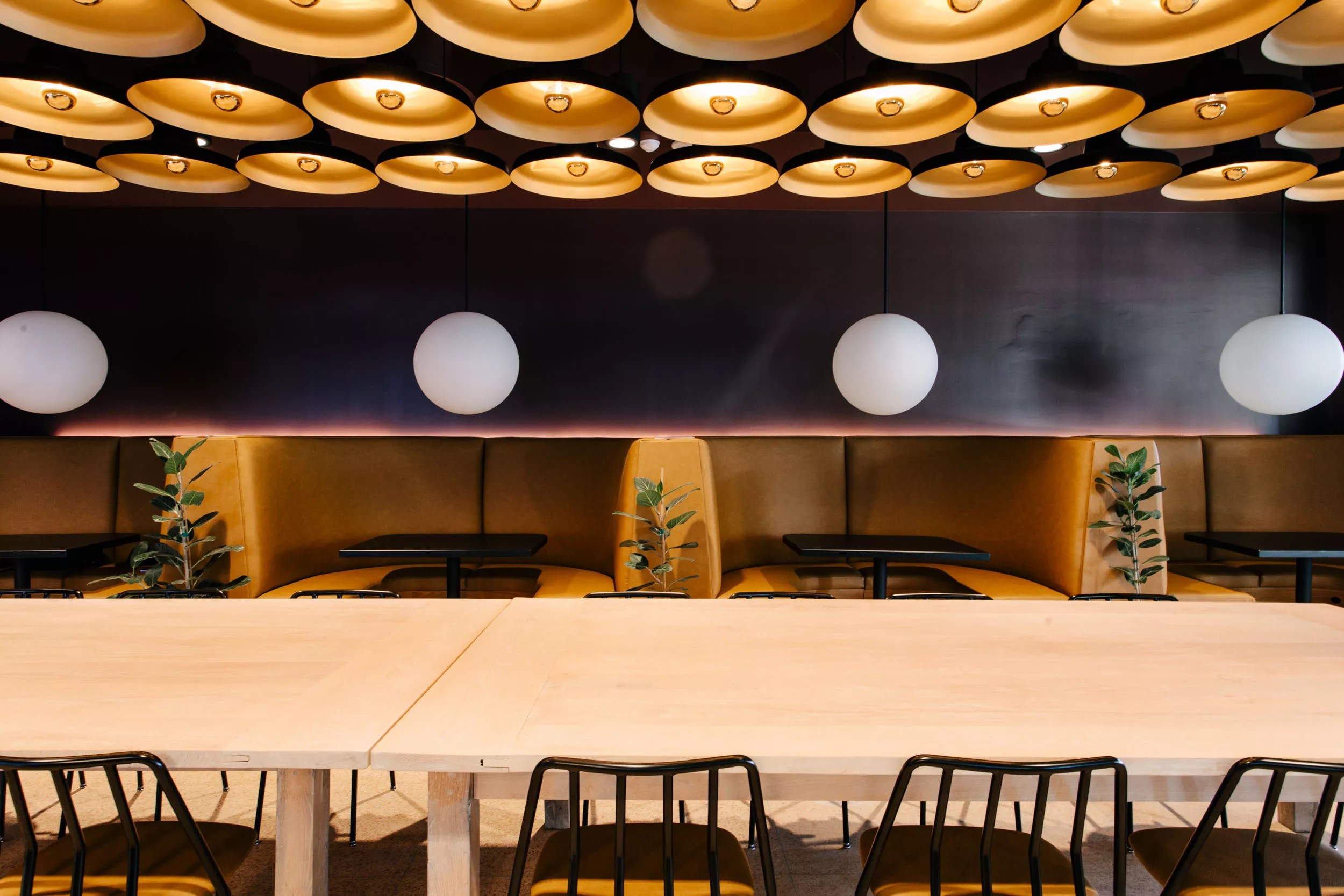 The indoor and outdoor space seats 100 between the 3,000-square-foot patio and 1,500-square-foot interior. Inside, the bar features U-shaped booths and communal tables, and one side will have a pink wall that’s “light, bright, really fun, casual,” Aaron says. Acclaimed San Francisco artist Jeremy Fish – a former patient of Jared’s from his days as a dentist – was tapped up to create a mural.