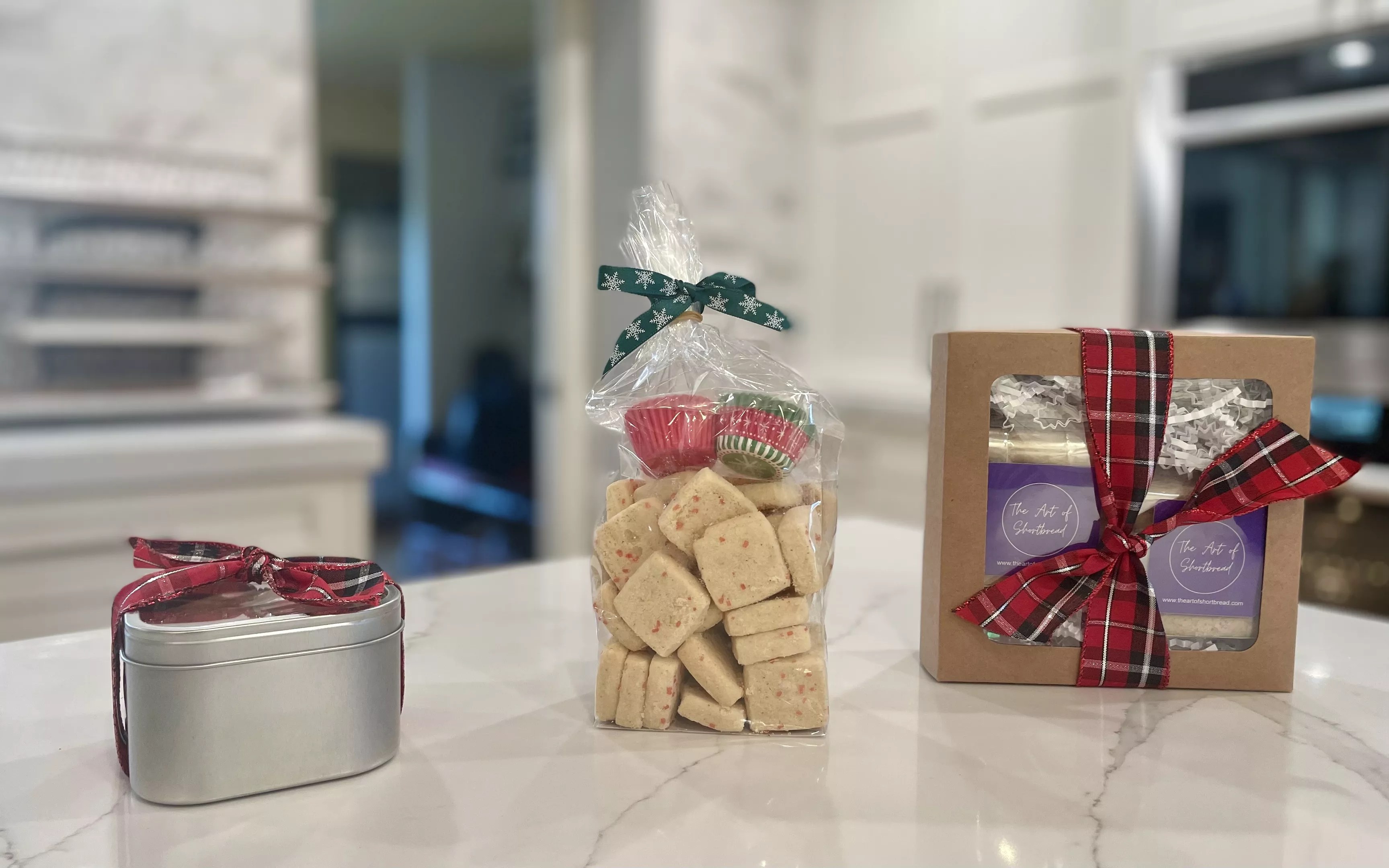 The Art of Shortbread offers a variety of holiday gift packs of shortbread in flavors like candy cane and chocolate orange.