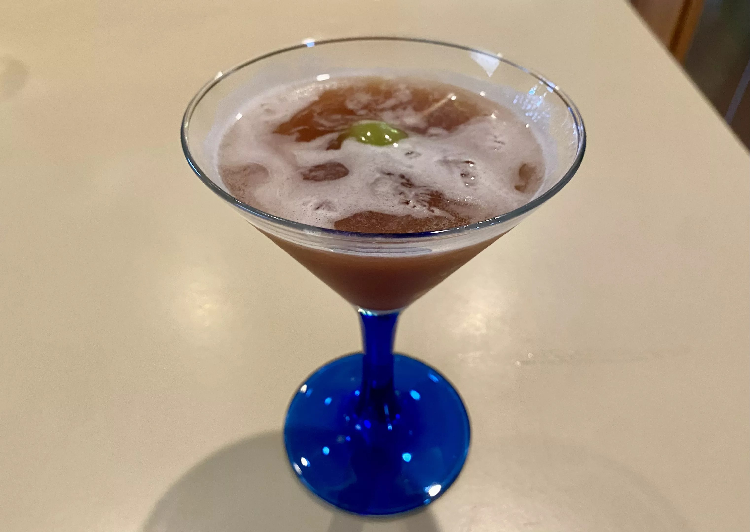 Ghia & Olive, a drink made with a bar spoon of olive juice, provides a booze-free take on a classic martini, with a botanical twist thanks to Ghia.
