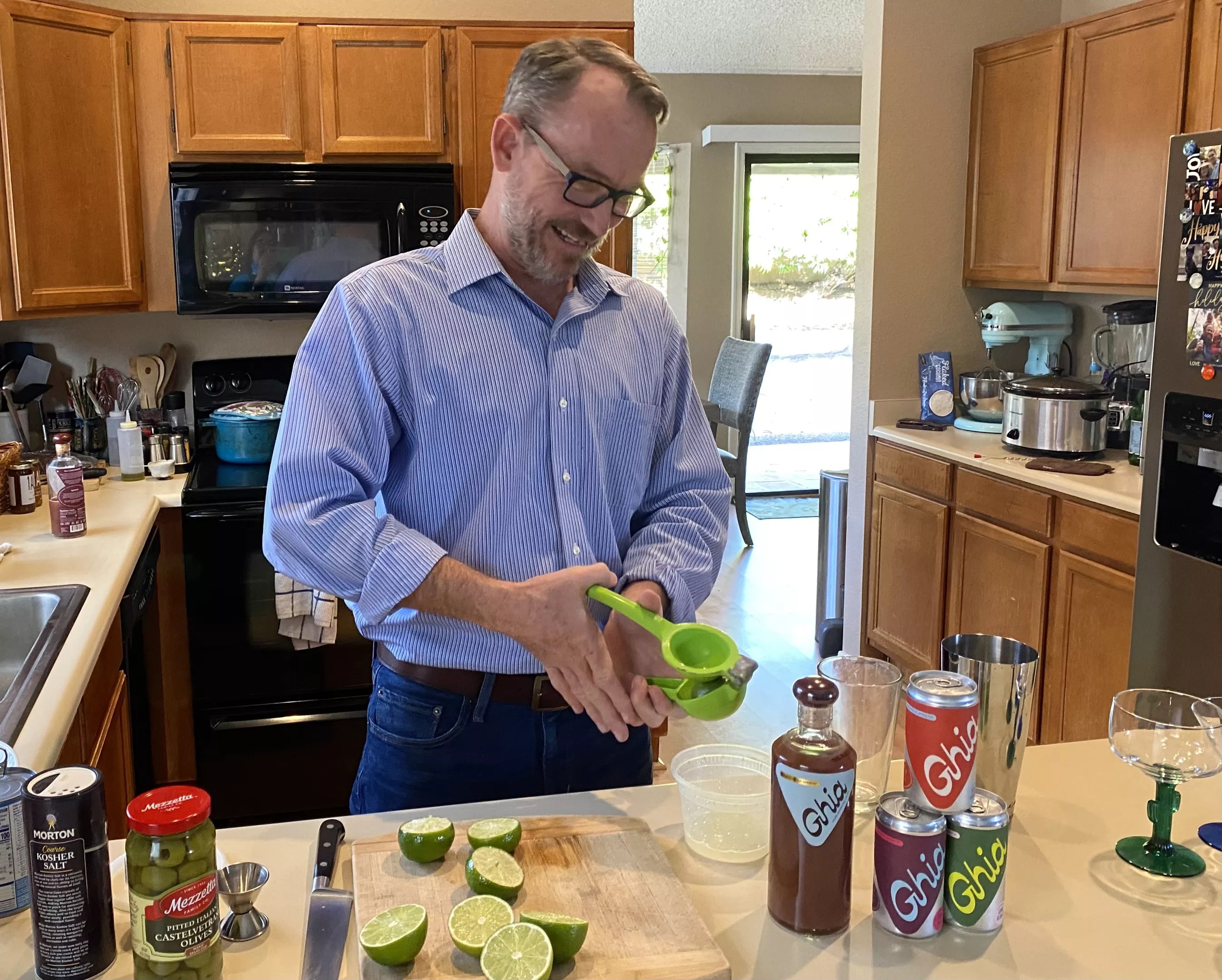 Nathan Claiborn, the Sober Somm, squeezes limes for a Ghia-rita mocktail. The drink is made with Ghia, lime, and agave syrup.