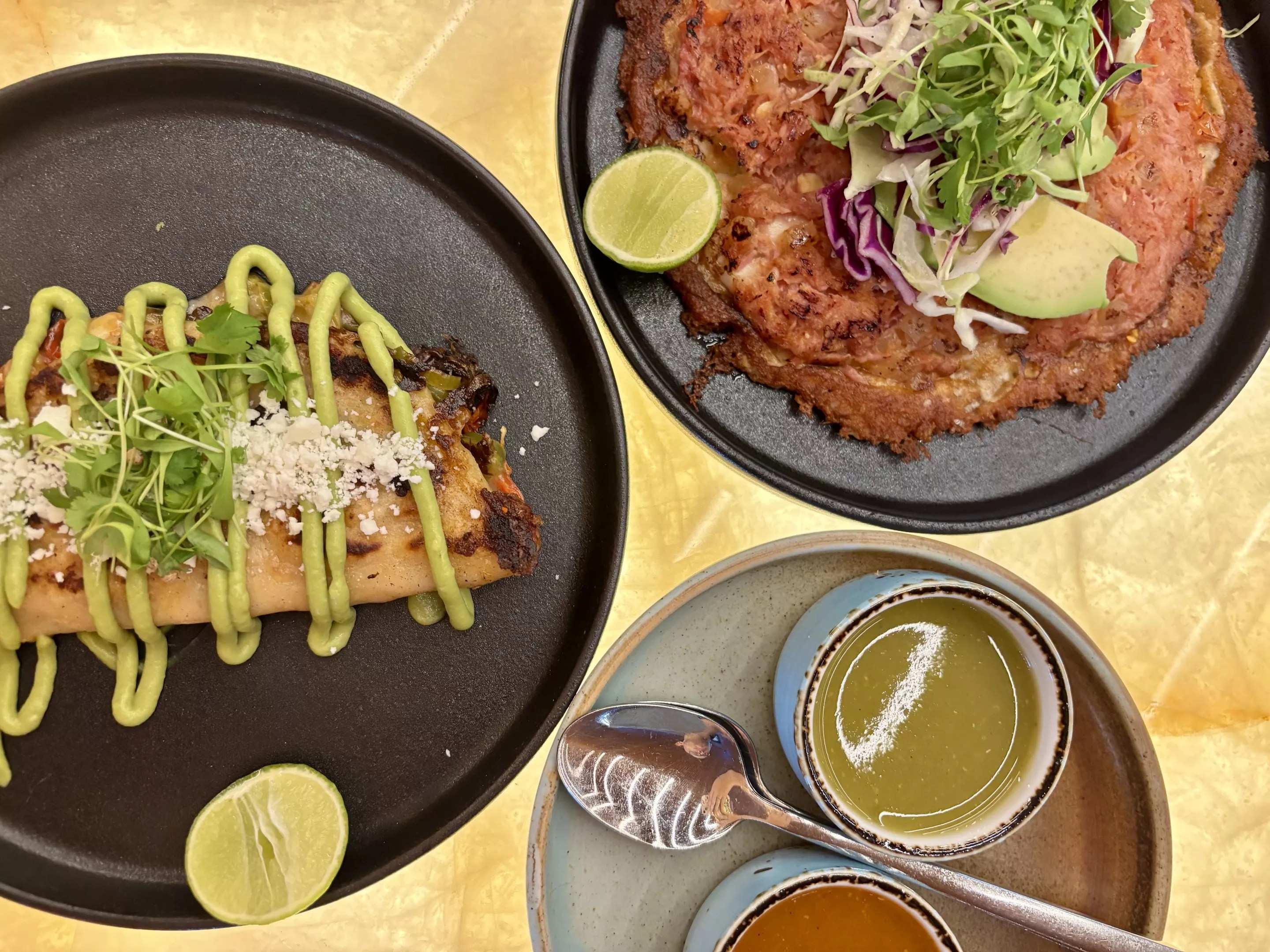 Next up, we opted for some tacos. The Gobernador, folded over and packed with shrimp and cheese, was the perfect backdrop for a bright green, herbaceous salsa. And the Vampiro de Marlin, a new addition to the menu, was served open-faced, loaded with shredded fish and topped with a bright, citrus slaw. Both of the cooked dishes were delicious, and left us eager to come back and try more.