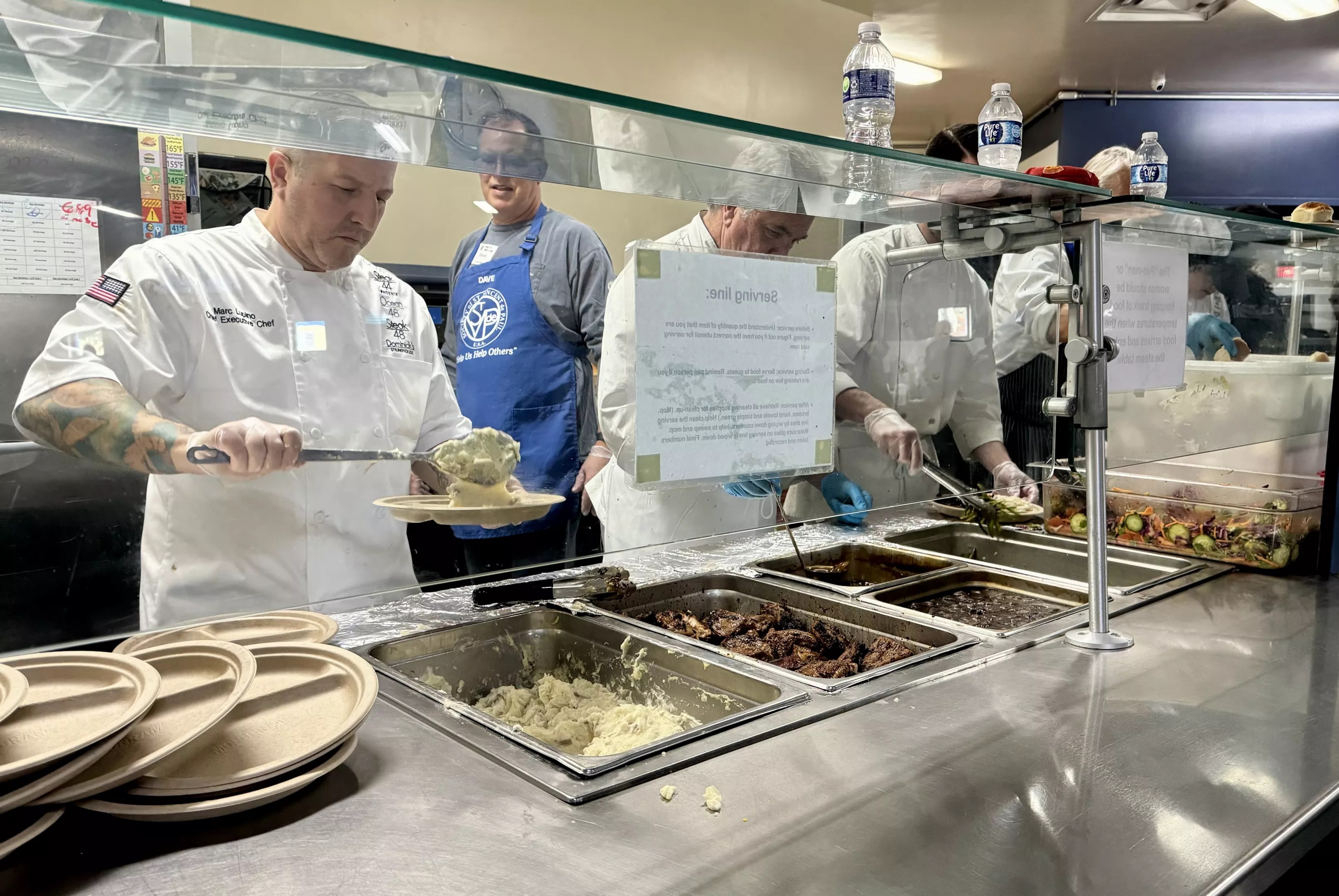 Reflecting on his day serving food at the shelter, chef Christopher Gross says, “you wish you could do it every day.”