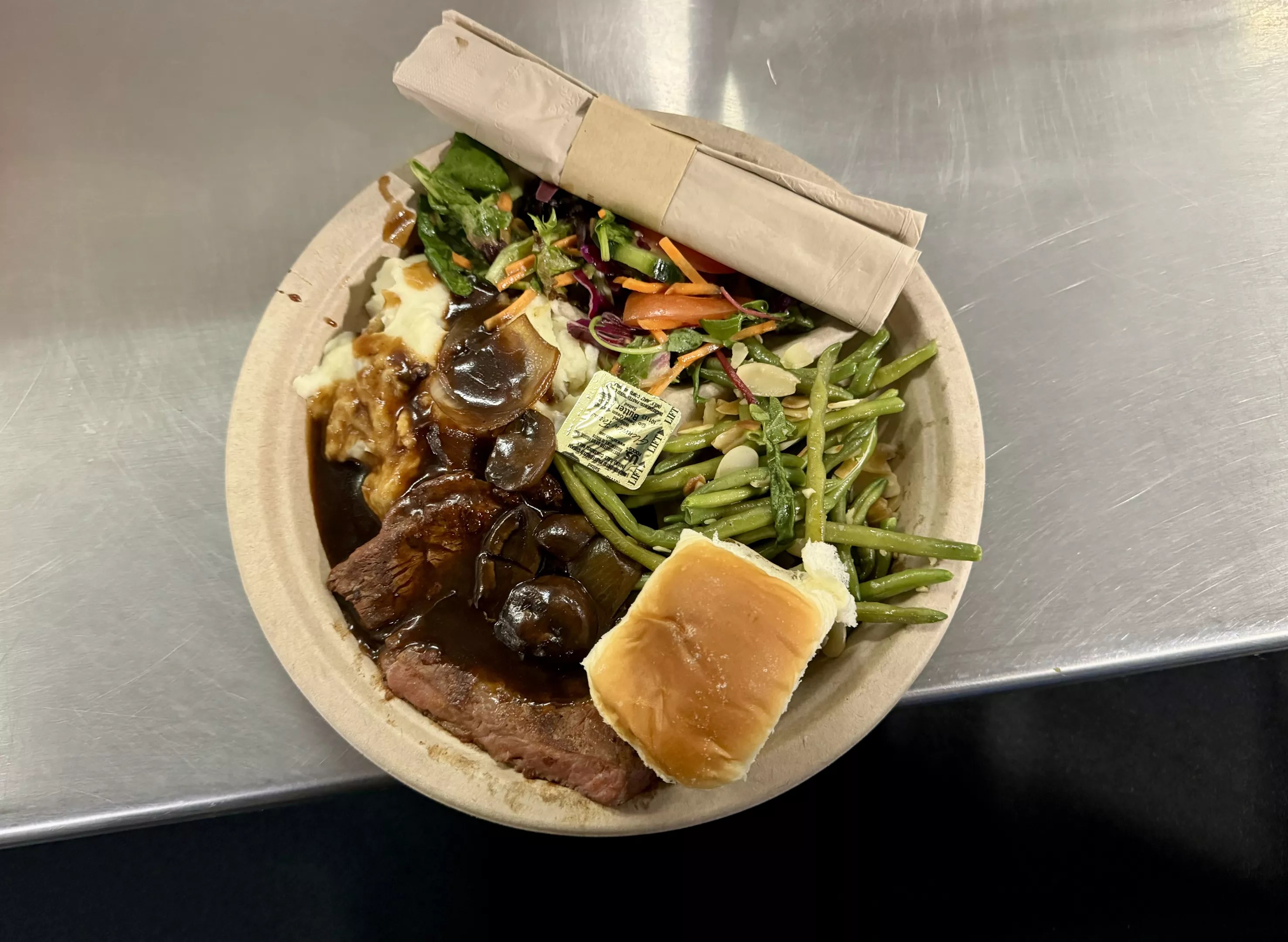The chef-crafted meal included ribeye steak with Lupino’s signature rub, mashed potatoes, a shallot mushroom gravy, green beans, salad, a roll and plenty of birthday cake.