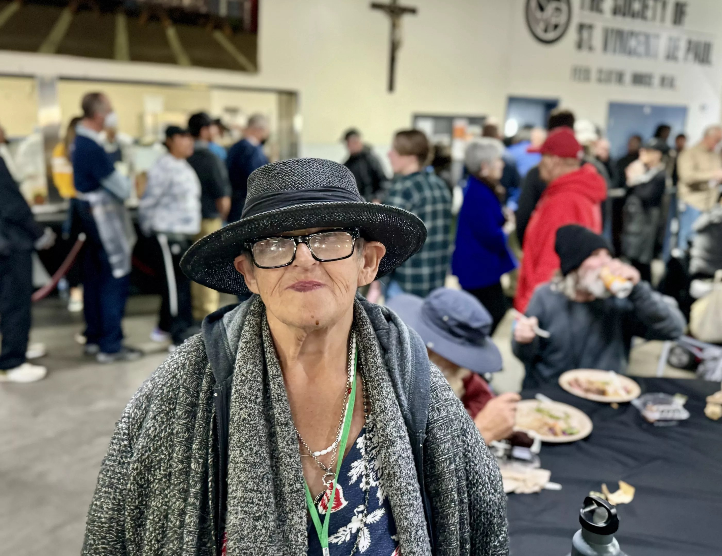 Patricia Diamond shared her gratitude for the meal and the shelter she’s received from St. Vincent de Paul.