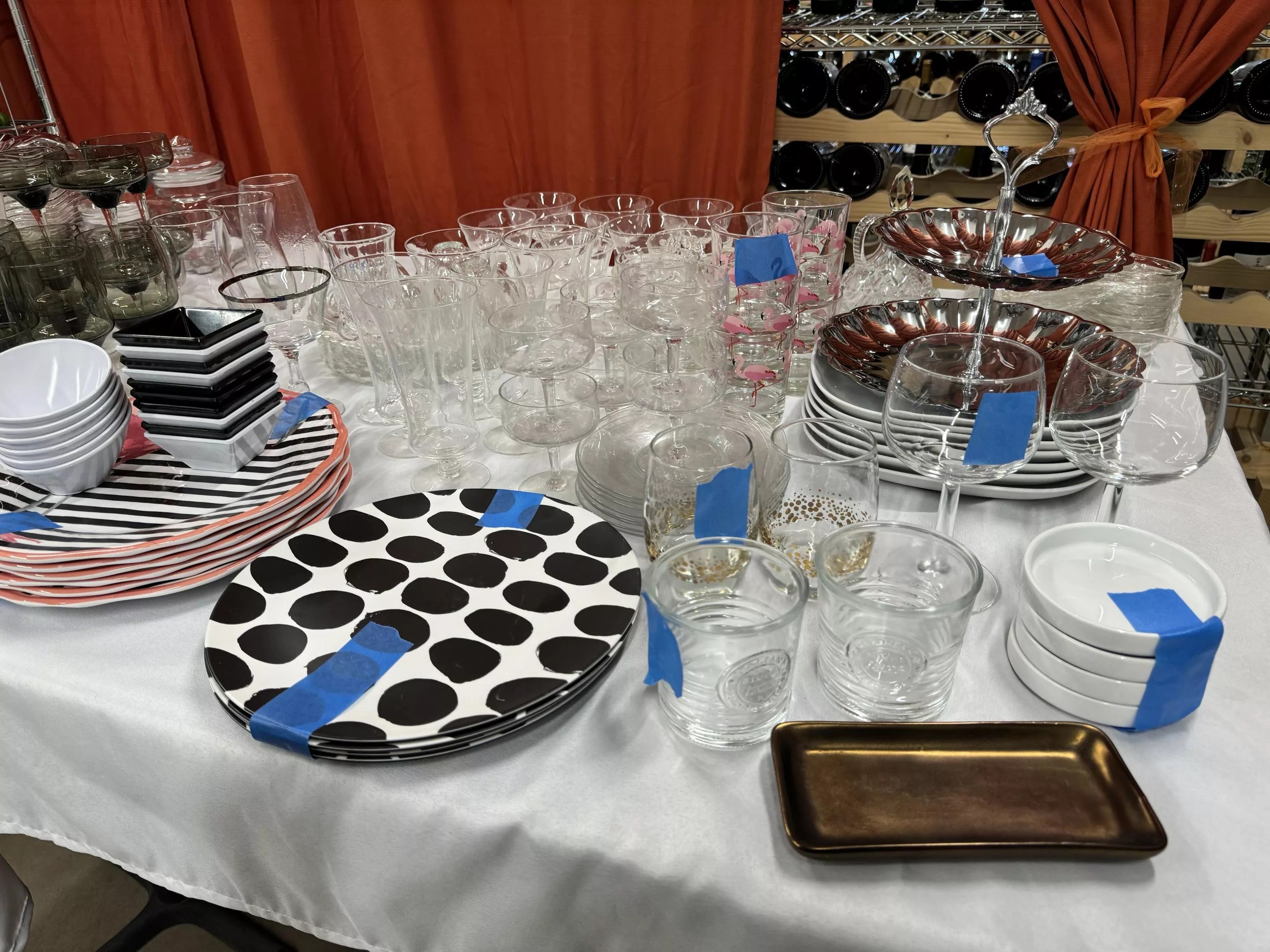 “There’s a lot of great things for entertaining,” Tracy Dempsey says of the items donated to sell at the Culinary Rummage Sale. That includes plates, wine glasses and more.