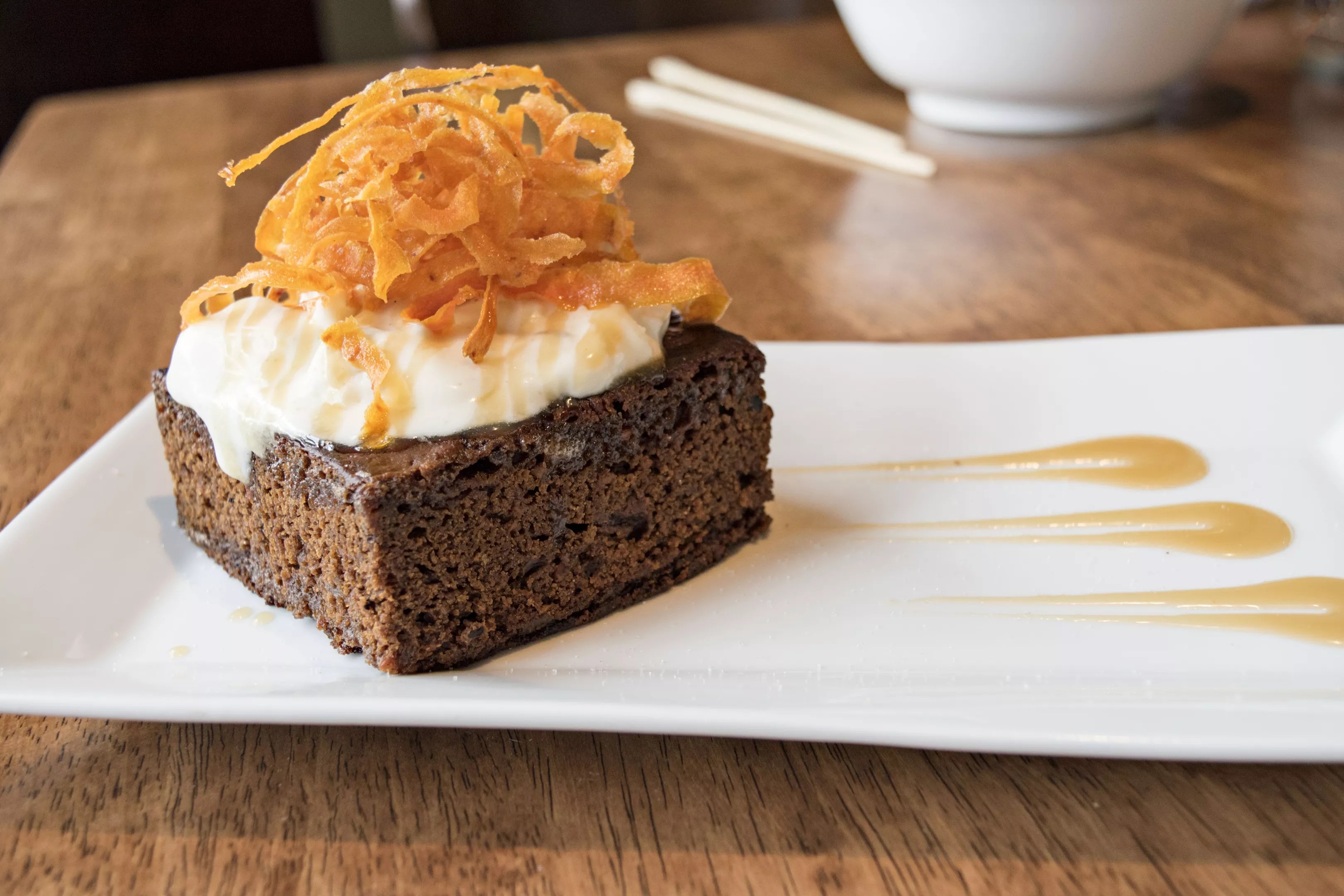 SoSoBa’s miso carrot cake with vanilla goat cheese and soy caramel.