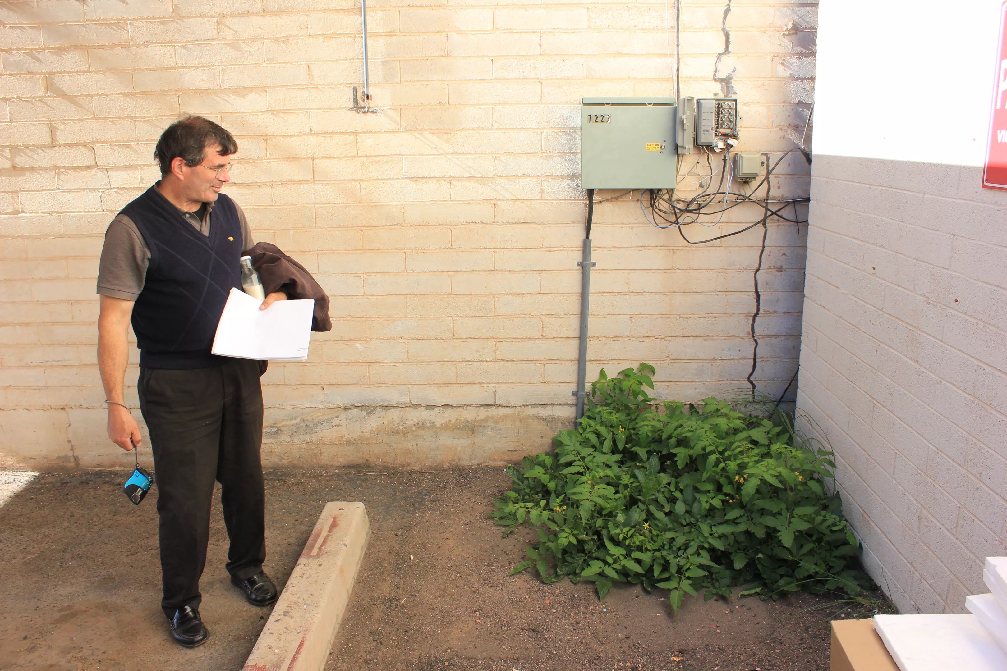 Nearing the end of the tour, after whipsawing his listeners with Latin and Tohono plant names, Lewis walks north and turns into a wide alley. He has one more plant to showcase: tomatoes.