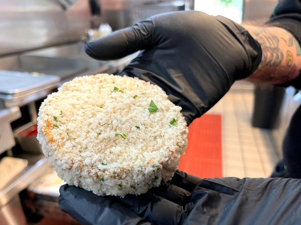 “What impressed me was the intention that was put into it and that it’s not your average vegetarian-style burger. That’s what inspired me to do something on my own too,” says Piazza, whose version uses a different process, filling and frying method than Headly’s.