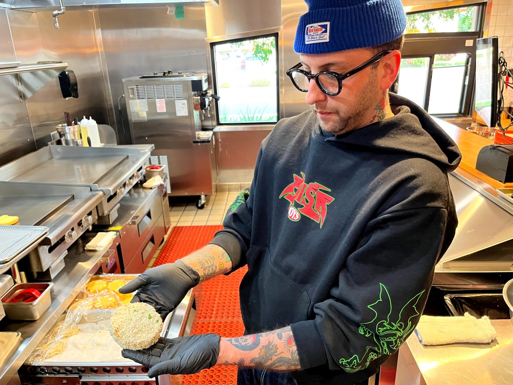 “We didn’t want it to be something that we buy or faux meat like the Beyond (Beef), or even your typical black bean type burger that is really common,” says Piazza, who came up with the recipe when opening his first brick-and-mortar location in downtown Phoenix in 2023. “We wanted to put a little more intention into it and make something that we like as well.”