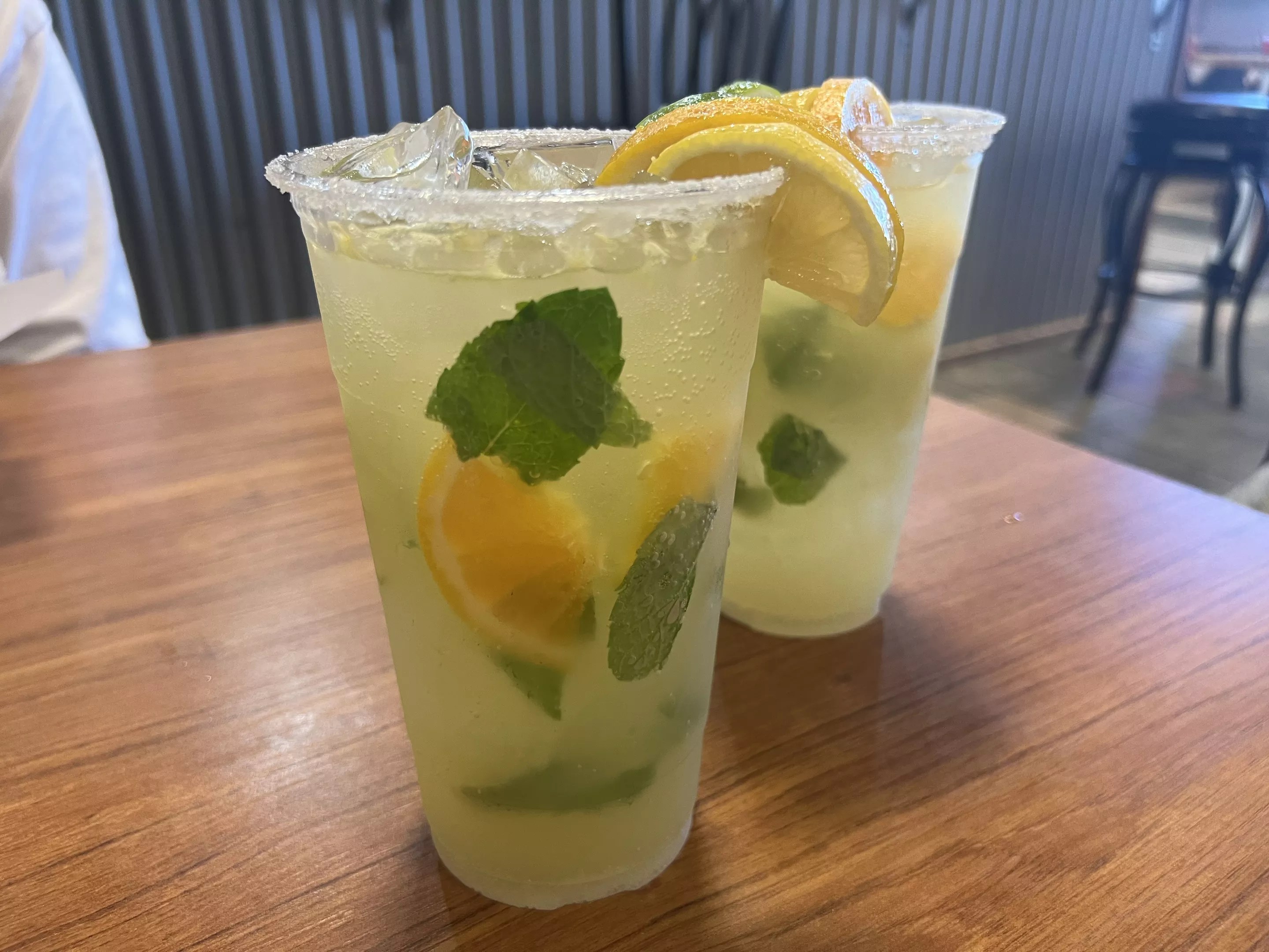 The Limonada Preparada is made with limes, mint, and carbonated water and topped with lemon and orange wedges.
