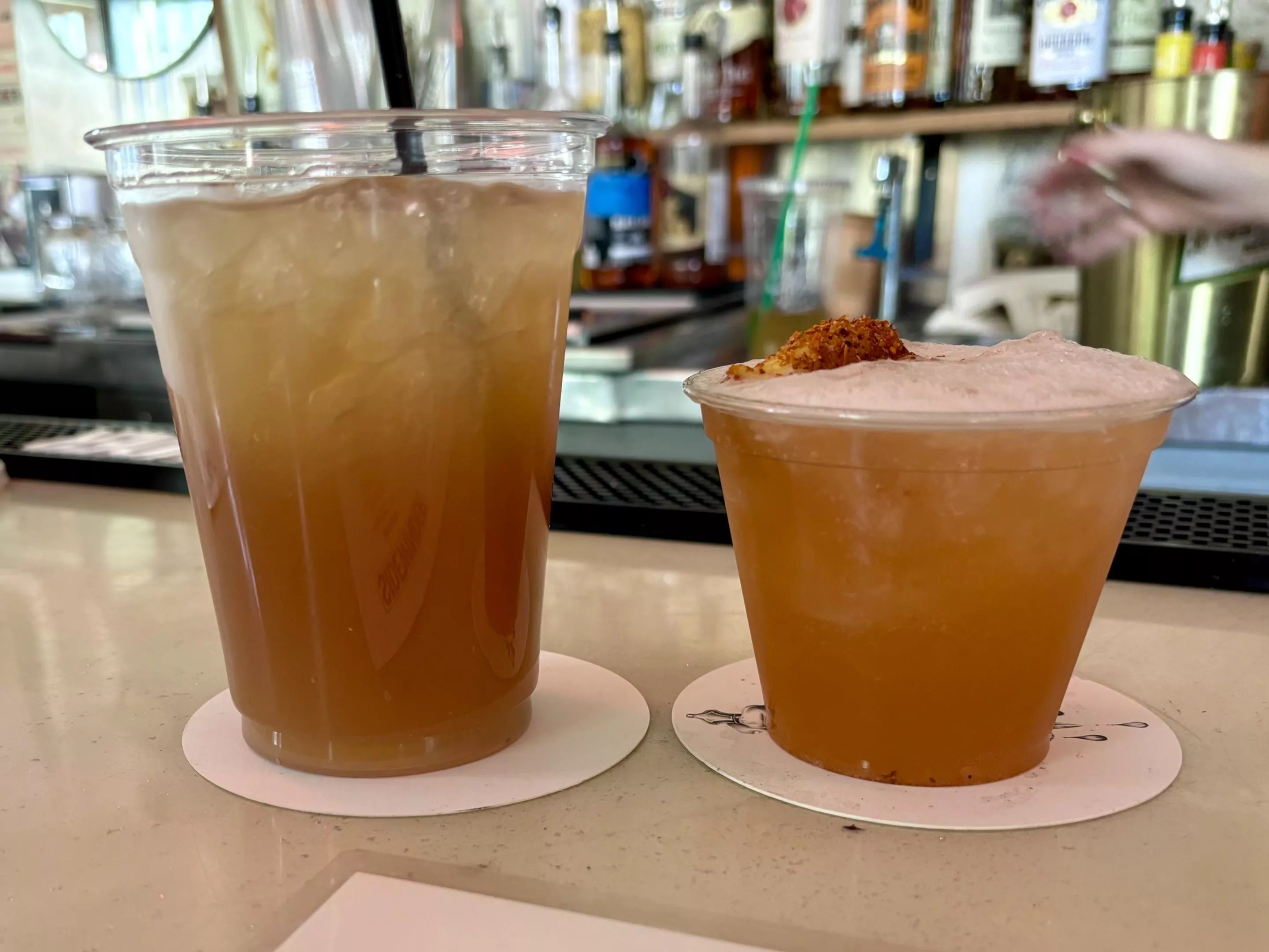 To drink, try the John Daly (left) or the Naked But Not Famous (right).
