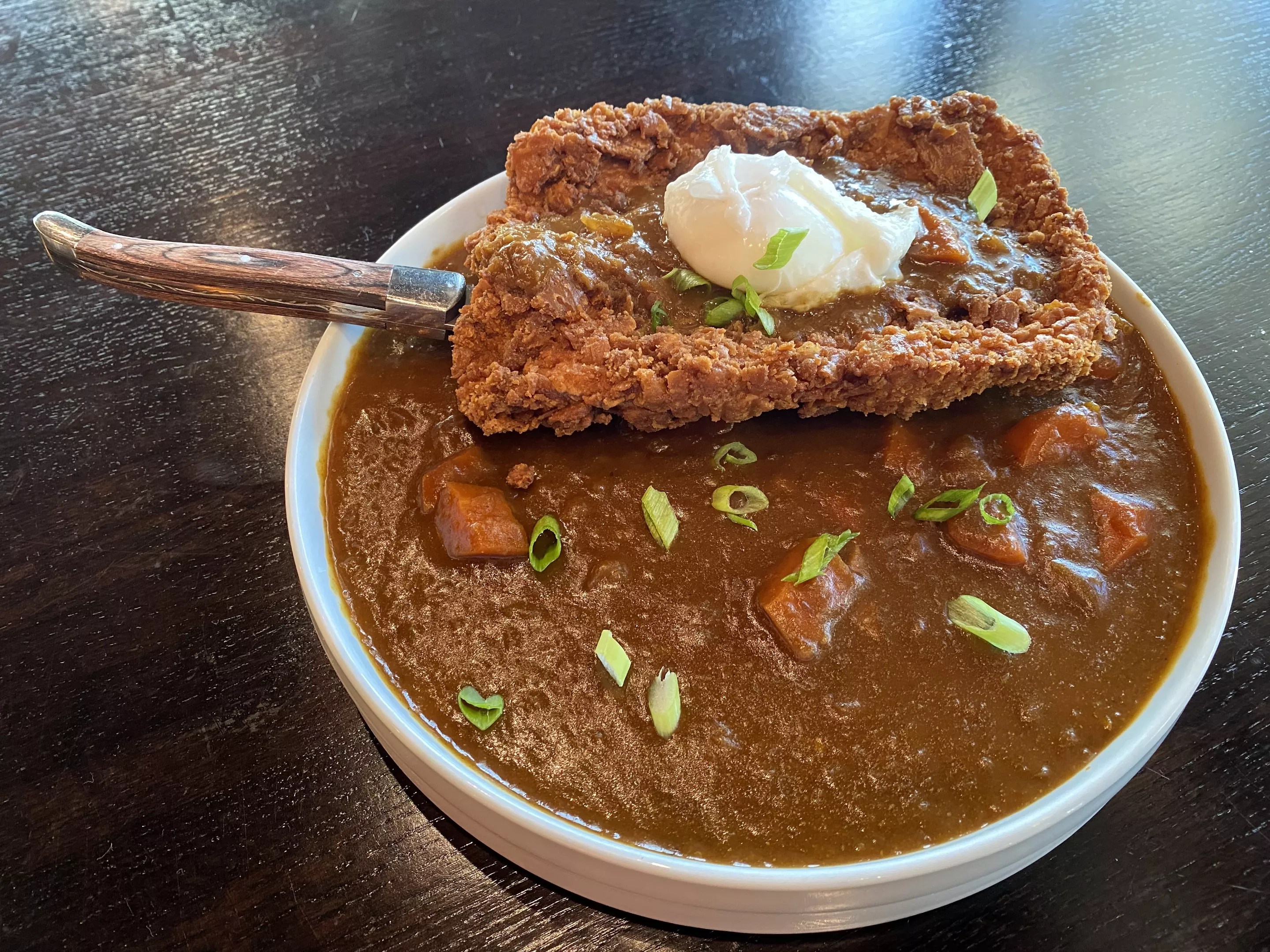 The menu says the pork tenderloin comes with “Japanese apple crisp curry,” but there were no detectable apple or curry flavors. Instead, the thick yet silky reduction is reminiscent of a classic pot roast dinner, complete with carrot chunks-a decadent, dark, deliciousness ideal for dredging.