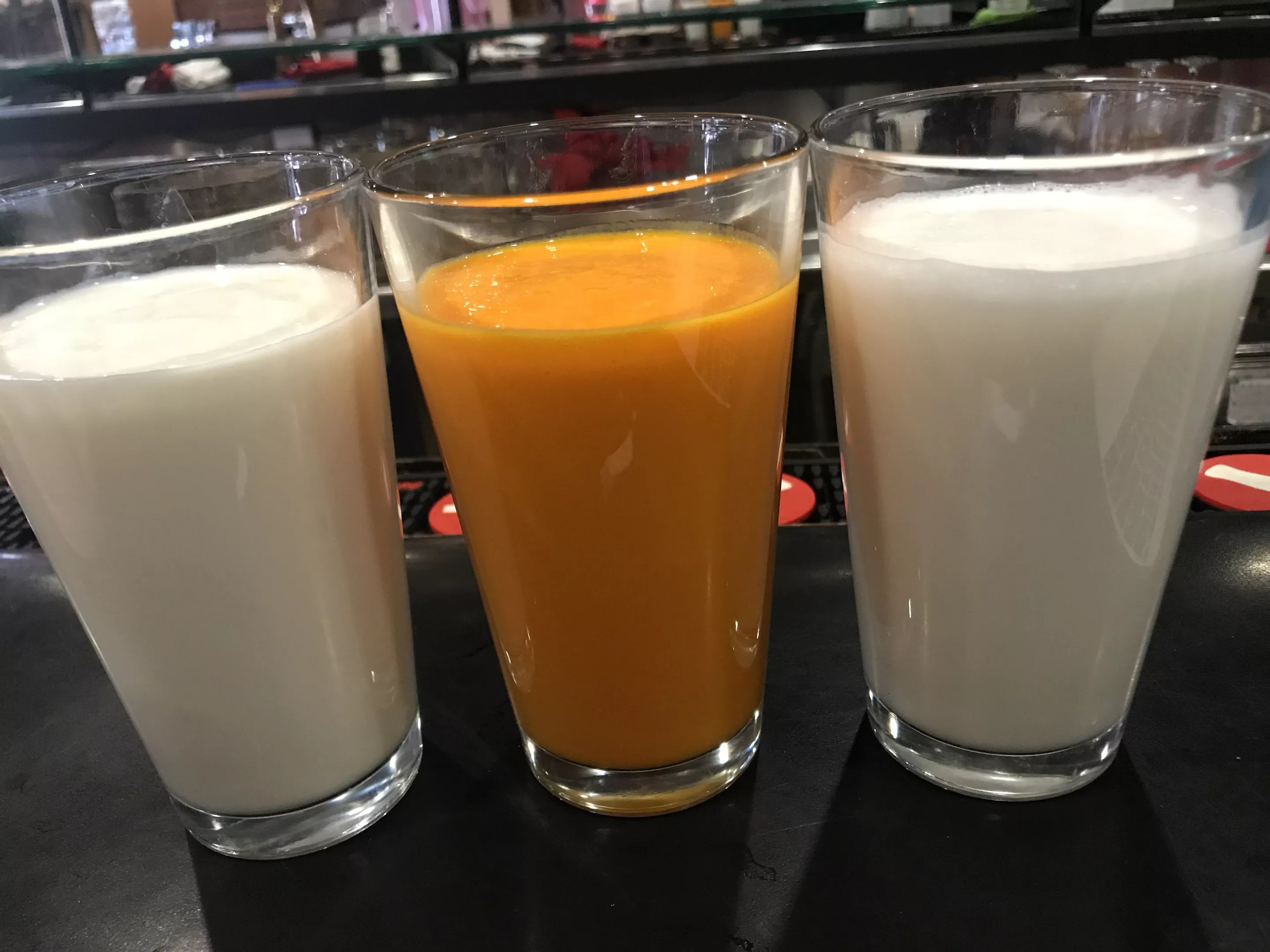 Marigold Maison caters to an upscale crowd, and its lassi reflects this. The mango lassi here includes rose water, and is garnished with a toothpick of mini-mangoes – almost like a daiquiri. The yogurt and mango are blended together well, yielding a subtle sour taste. Marigold’s lassi has a homemade quality to it, but that doesn’t mean chunks of mango are found in the drink. It is seamless, but you pay a premium at $5.