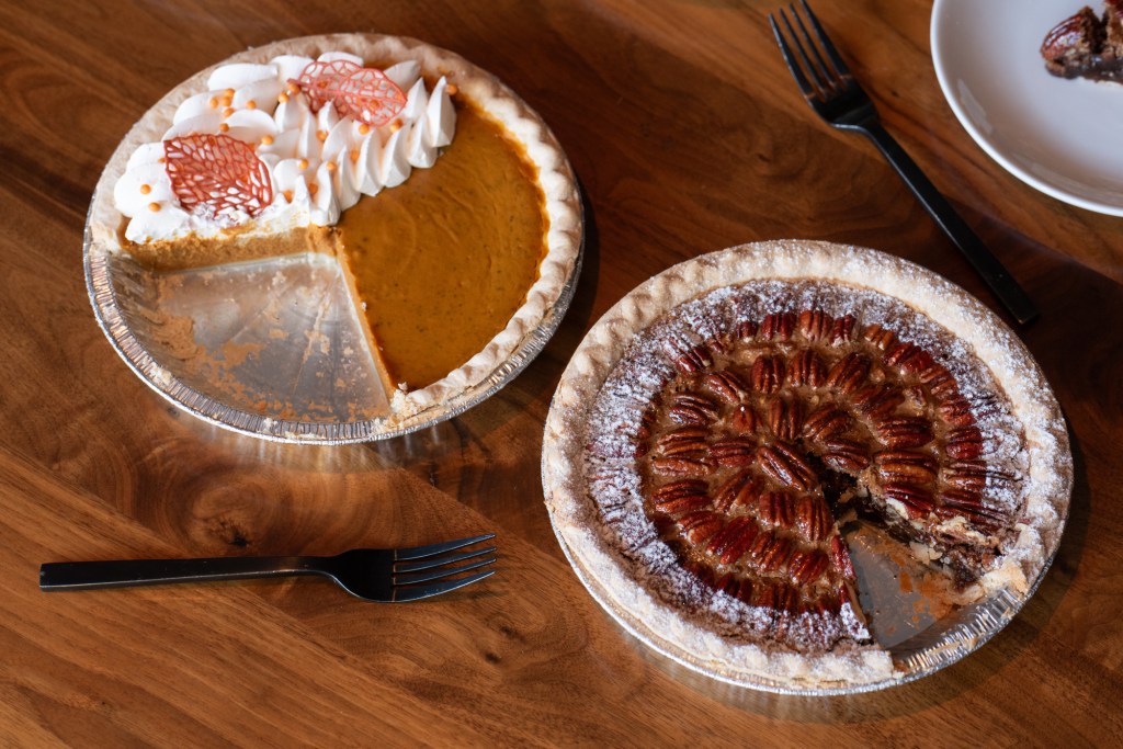 Satisfy non-meat eaters at the table with Green New American Vegetarian’s annual “Thanksliving” take-and-reheat plant-based dinner ($33.95, $19.95 for ages 12 and younger). It features the popular lineup of crispy Seitan turkey breast with gravy, stuffing with organic cranberry and toasted walnuts, roasted garlic mashed potatoes, organic sweet corn with smoked paprika, fried Brussels sprouts with brown butter, a local artisan dinner roll and an organic oat and winter berry cobbler for dessert. A gluten-free option ($35.95) is also available. Whole pies are optional as add-ons ($38.95-$42.85).
