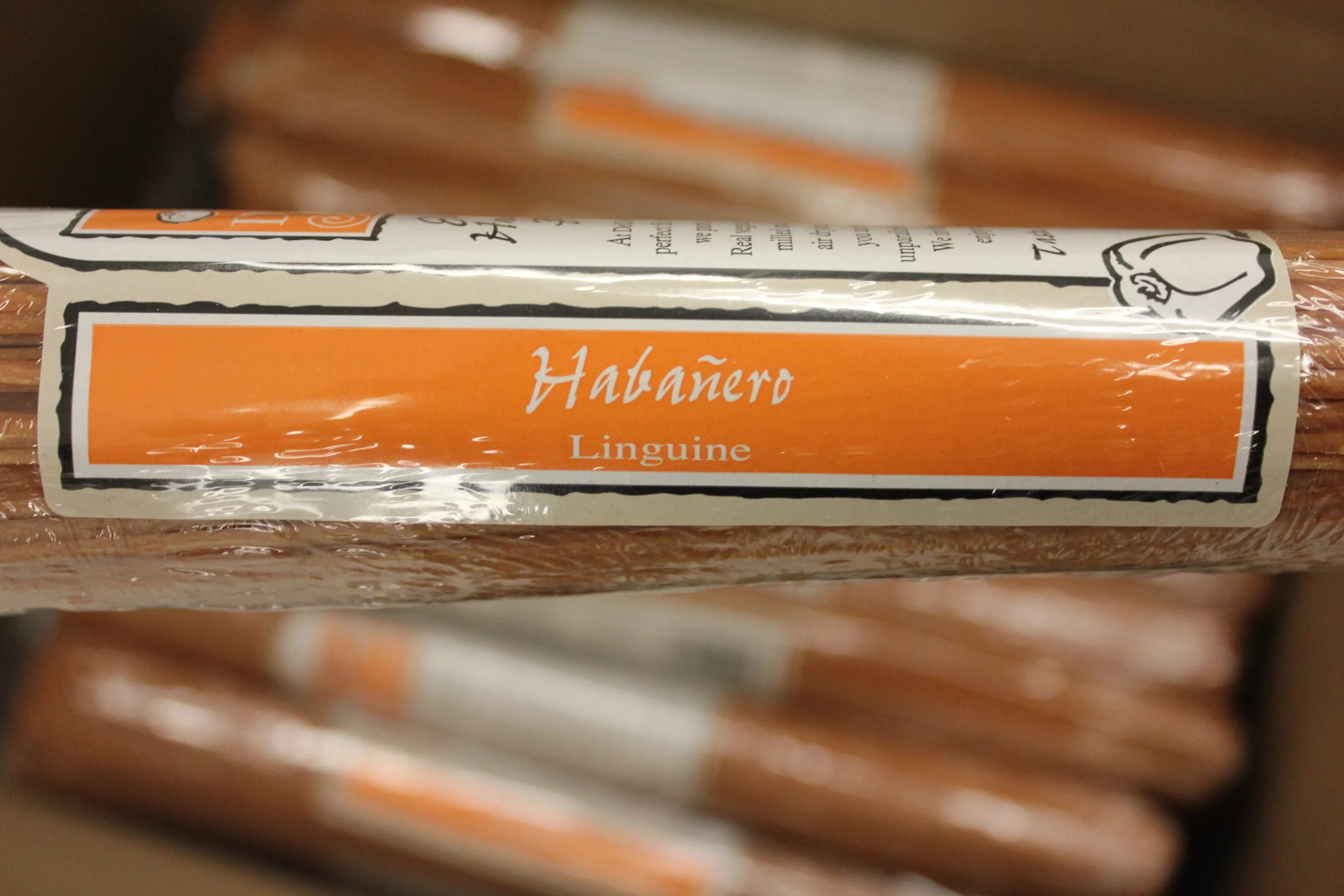 “I buy the best of the best and try to leave everything in as raw a state as possible,” he says, noting that he cooks a few ingredients, like habaneros, when the resulting pasta benefits more from the cooked flavor. DeCio habanero spaghetti dough uses an unholy ratio of 10 pounds of roasted Arizona habanero pepper to every 50 pounds of durum semolina pasta. That’s a lot of habanero.
