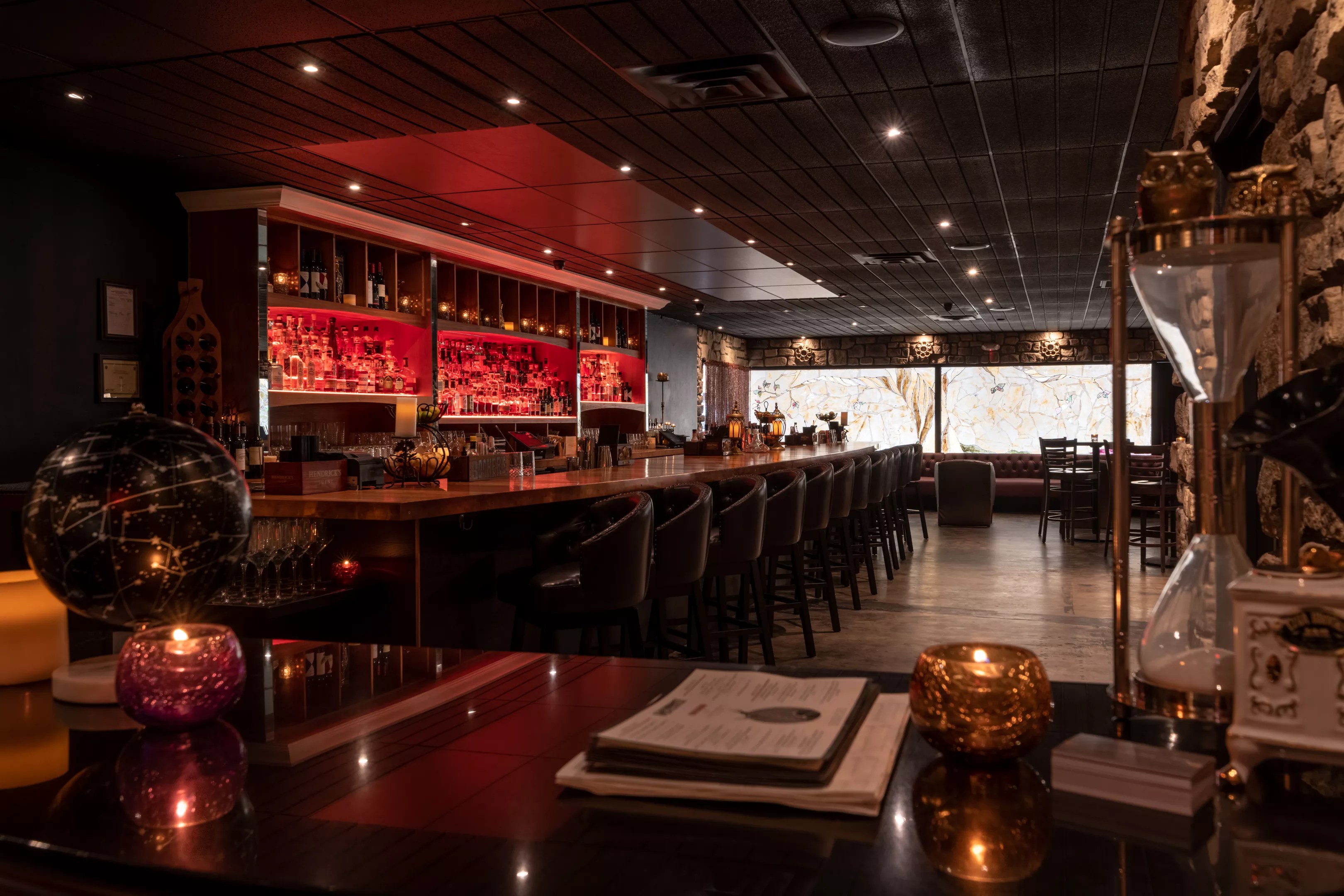 Even this requires some thought. Do you want a flight with all German wines? How about a flight themed around the mood of love? A flight of bubbles? Chat with your server for recs; sink into one of the soft, velvety couches, relax, and enjoy the cellar-like atmosphere vibe. The nosh menu includes traditional wine-pairing staples, such as cheese and charcuterie boards, warm olives, and bread.