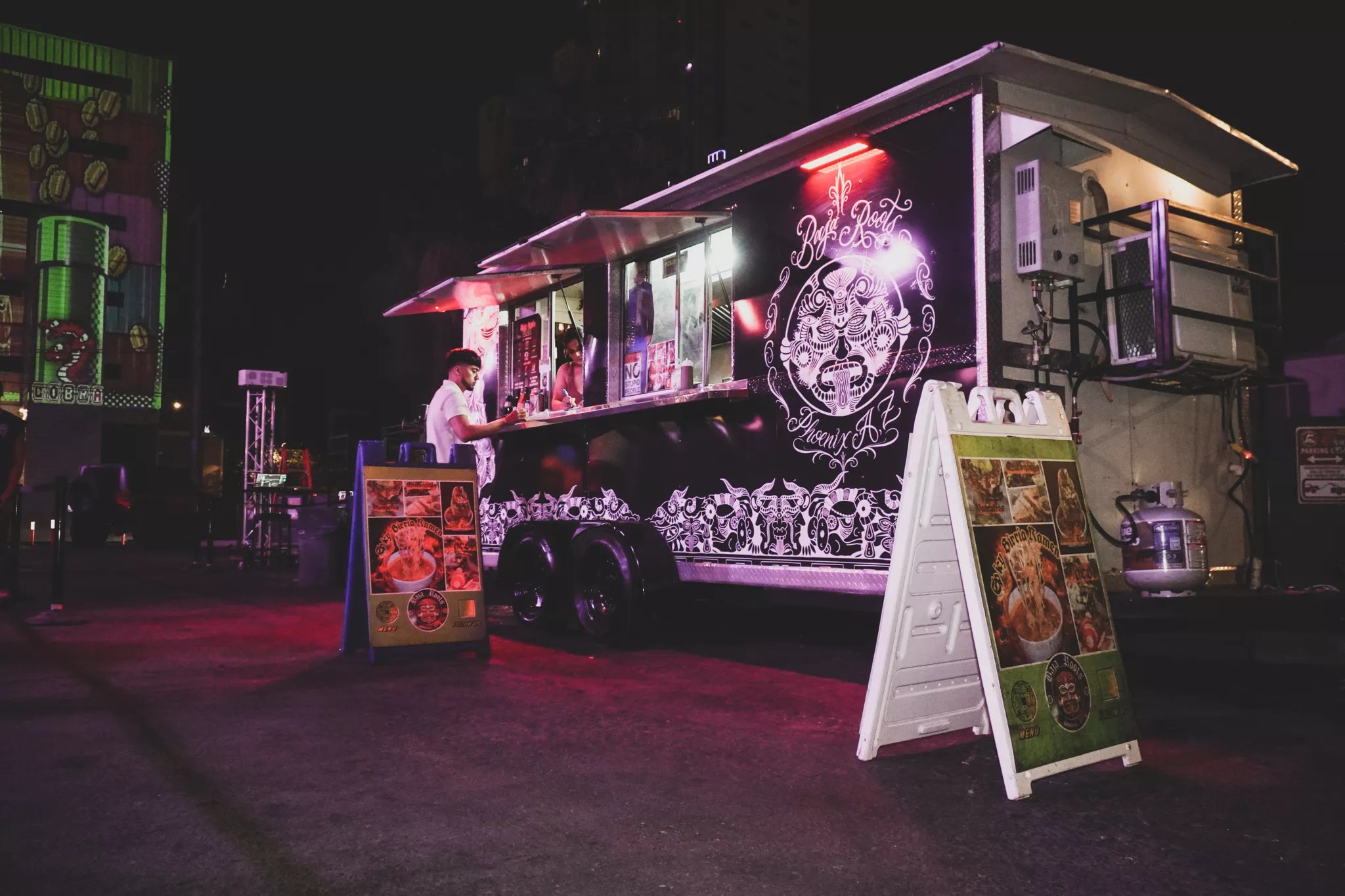 Baja Roots dishes out Tijuana-style eats including tacos, burritos and quesadillas to late-night crowds from its post at the Cobra Arcade Bar lot in downtown Phoenix.