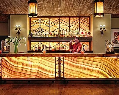 The proprietors of the Onyx Bar & Lounge should charge admission, because their lustrous establishment boasts awe-inspiring views of both Troon Mountain and Pinnacle Peak, usually when lit by the amber rays of sunset. The radiantly rustic furnishings and décor of the cozy drinkery, located inside the opulent Four Seasons Resort Scottsdale, is equally splendid, having been hewn from mesquite trees and the titular stone. But these posh amenities take a back seat to the vibrant alcoholic concoctions and small-plate delights served here.
