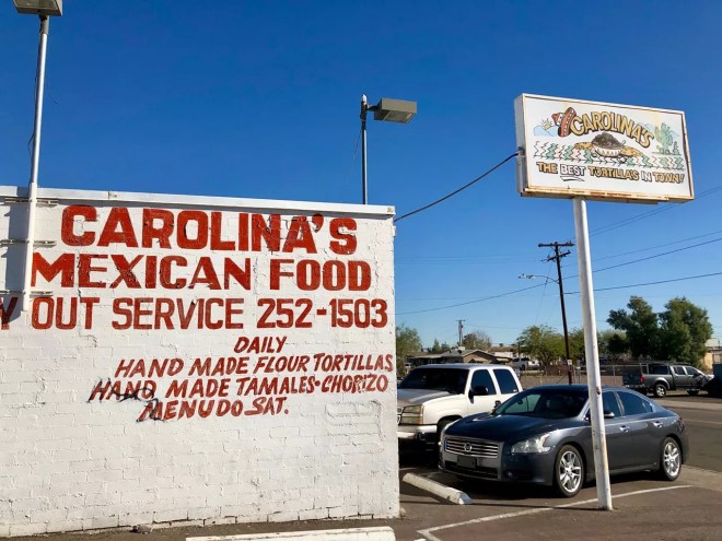 A second location of this legendary Valley restaurant, Carolina’s has a cult following for its out-of-this-world homemade tortillas. Folks line up to gorge on green corn tamales, enchiladas, red machaca burros and, on weekends, menudo. Breakfast burros are another delicious treat.