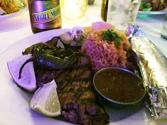 The tender, flavorful carne asada is sliced thin and paired with helpings of rice, beans, tortillas, and guacamole. Chile Verde is simmered, melt-in-your-mouth chunks of pork in a piquant green sauce. And the mole de pollo offers wonderful, smoky layers of flavor with just the right touch of sweetness. Ol