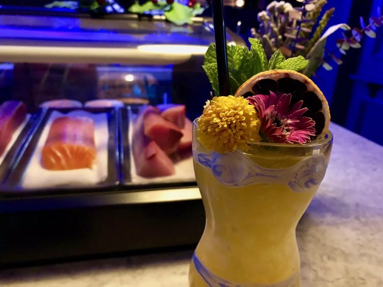 A sushi and cocktail bar (or maybe the other way around, depending on how your evening’s going), Across the Pond offers a big-time dining experience in petite environs. The open-kitchen setup here lets you observe the chefs up close as they quietly chat with one another while preparing handmade rolls and blowtorching the occasional scallop. (The place smells like a campfire, in a good way.) The owners have brought the same levels of heat and humor to the cocktail list as can be found at Clever Koi, their Asian kitchen located just across the breezeway. We recommend the Yojimbo, the Berry White, and the concoction known as the Ms. Paka — lady-shaped glassware, sunrise-colored mixers, and a garnishing of mint, a dried blood orange wheel, and flowers (like, straight-up backyard flowers). New Normal: Across the Pond accepts reservations via Tock.