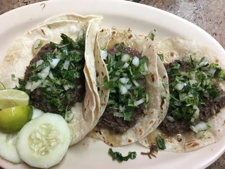 Whether entering from the small parking lot or the surrounding neighborhood, you’ll smell the kitchen — grilled meat, aromatic onions, some array of spices — before you even reach the doorway to Asadero Norte De Sonora. Asadero may be one of the coziest Mexican restaurants in the Valley. The dining room is homey and brightly lit, with picnic-style benches and tile-top tables. A TV is going, and a server is rushing around trays of water, tall glasses of horchata, Mexican Cokes, and complimentary chips and salsa. It can feel like a casual waiting room — with patrons chewing while checking their phones or eyeing a soap opera — or an ideal date or family dinner spot. But above all, it’s the food that draws in all who sit here or glide in for to-go orders. Recommended dishes listed on the laminated menu (always backdropped by a photo of Havasupai Falls) include the barbacoa burrito, baked costilla, and lengua stuffed into tacos, tortas, and/or burros. The best part? Most meals won’t run beyond $10 — unless you blow some change at the toy-vending quarter machines. New Normal: Asadero Norte De Sonora’s popular picnic-table seating is more spaced out than ever inside. Takeout is always available, too.