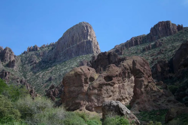We’ve come back to this allosaurus-like spire over the years because it’s relatively easy and safe compared with other climbs in the Superstition Mountain Wilderness Area, which is like the Yosemite of Phoenix metro climbing. The Arizona Mountaineering Club climbs here frequently, and the anchor points are big chains connected to bolts drilled and cemented into the rock. The exciting part for lead climbers comes between those anchors. There are handholds aplenty, but not always much protection to clip the rope into, leaving open the possibility of a serious lead fall.