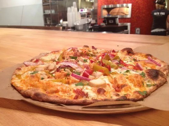 When you bite into the Steak and Blue Pizza at Fired Pie, it bites back. That would be the gorgonzola, a pungent Italian cheese made from unskimmed cow’s milk that has salty sass running through its blue veins. The way the cheese interacts with the rest of the Steak and Blue’s ingredients – garlic, oil, mozzarella, mushrooms, peppers, onion, and thin-sliced steak – doesn’t change much about its dirty-foot aroma. Against these odds, though, this pie tastes amazing. We recommend it for a solo outing, though. Maybe not great for date night.