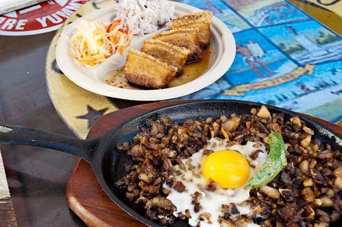 When Brian and Margita Webb’s mobile kitchen of Filipino street foods rolls into your neighborhood, make sure to inquire about the sisig ($8). It’s not always available, but when it is, this succulent hash-like dish of diced and saut