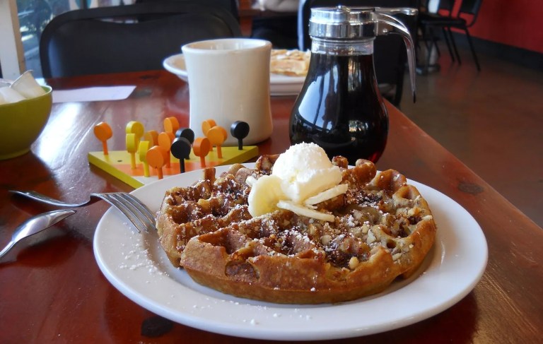 Craving waffles in the East Valley when it’s too early to chase down a waffle truck? You’re in luck. Jeanne Dahl’s cheery Gilbert diner, JP Pancake, serves up not only her signature baked griddlecakes, but solid coffee and fluffy, malted Belgian waffles. These thick, breakfasty confections are crisped to a golden crust on the outside but actually cake-like on the inside — and full of flavor. They hold up to plenty of whipped butter, syrup, or fancy toppings on offer, but they don’t need to be dressed up. Hearty, gluten-free waffles are an option, too. Weekend mornings can mean a short wait, but waffles are their own reward. Read our review.
