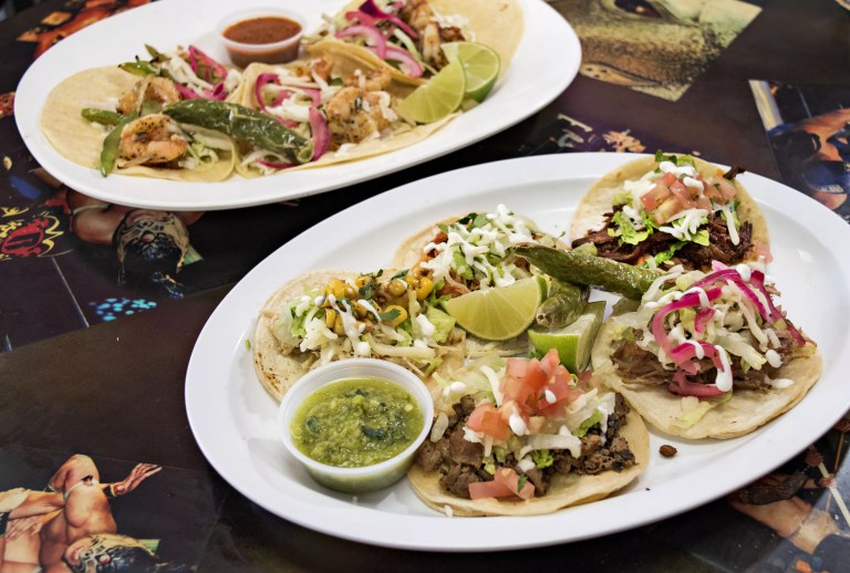 Mucha Lucha Taco Shop, with locations in south Scottsdale and south Tempe, is a lucha libre-themed taco shop that specializes in guisados, the home-style Mexican braises that are slowly simmered for hours, and prepared with different blends of chiles and seasonings. You’ll find about a half-dozen varieties of meat preparations, including an excellent chipotle chicken tinga, a very spicy chile verde, and slightly crisp, flavorful carnitas. All of these are dolloped onto your choice of corn or flour tortillas. There are also enormous, and enormously tasty, burritos, including a meat-lovers burrito called El Hefe, and massive Surf & Turf burrito stuffed with big, plump shrimp, bundles of slightly chewy carne asada, and layered with grilled peppers, beans, and rice.