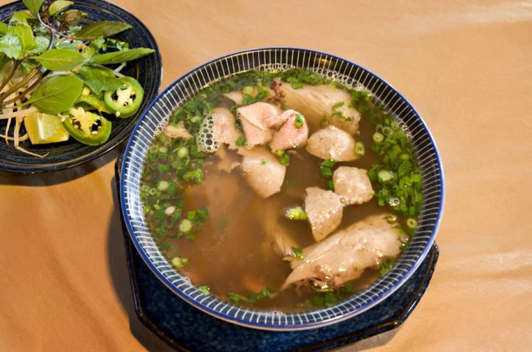Way-cheap, very satisfying Vietnamese eats, in a pleasant, casual environment that features red umbrellas hanging upside down from the ceiling and blue walls hung with black-and-white photos taken by the owner’s father. The specialty here is pho, a hearty soup of rice noodles and broth, traditionally using beef, but these days it also incorporates seafood and chicken. A green papaya salad and/or spring rolls is a lovely way to start the meal; warm banana bread pudding is an even better way to end it. Read our review.