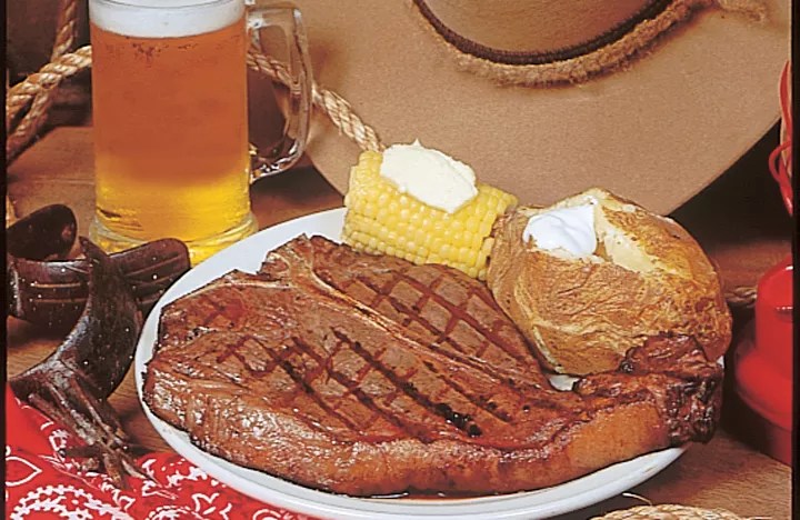 It’s for tourists, but this landmark cowboy steak house is no trap. Have your kids deputized by the “Old Timer,” get your picture taken in Western duds, and enjoy the country-western band. Then settle in for excellent, mesquite-grilled steaks. The two-pound porterhouse and New York strip are the best options. Cheesecake and apple pie are effective desserts.