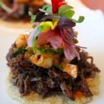 Executive chef Matt Zdeb’s unusual and tasty fare, finessed by Chef Lorenzo Lopez and sushi chef Andy Hisao Suzuki, is all about Mexican-Asian fusion goodness. Guacamole with pumpkin seeds and cilantro is mouthwatering and creamy, with chunks of avocado and red onion and a lingering heat from togarashi spices. The bacon-wrapped Medjool dates offer a striking combination of flavors and textures. Wild mushroom tacos are robust with wood-fired champignons and poppy seed crema, folded into hearty, soft corn tortillas. And the tempura unagi roll is a real surprise; the entire roll is tempuraed. Shrimp cocktail ceviche is the perfect example of fusion done right: Its beautiful presentation in a big ceramic bowl of ice offers slender slices of avocado and sliced prawns “cooked” in a snappy, cold tomato-citrus broth and dotted with spiced popcorn. Read our review.