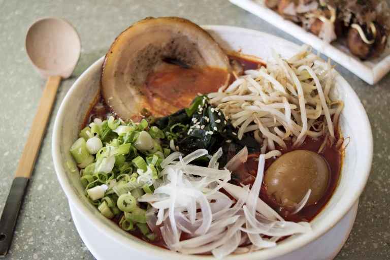 Tampopo Ramen is a small, bright strip-mall restaurant in Tempe that specializes in Hakata-style ramen, a regional variety that’s known for its tonkotsu pork broth and use of thin, straight noodles. The menu offers typical Japanese snacks like takoyaki, a type of round dumpling that’s stuffed with minced octopus and garnished with katsuobushi, also known as bonito fish flakes, which seem to move and “dance” upon contact with hot food. The restaurant’s signature ramen is tonkotsu, made with the rich, slightly salty house pork broth, and then topped with a slice of roasted pork, bean sprouts, a hard-boiled egg, wood ear mushrooms and the restaurant’s own freshly made noodles. For an extra buck, you can upgrade your ramen to the “rich soup,” a kind of concentrated broth that’s simmered for at least 12 hours to achieve extra depth and flavor.