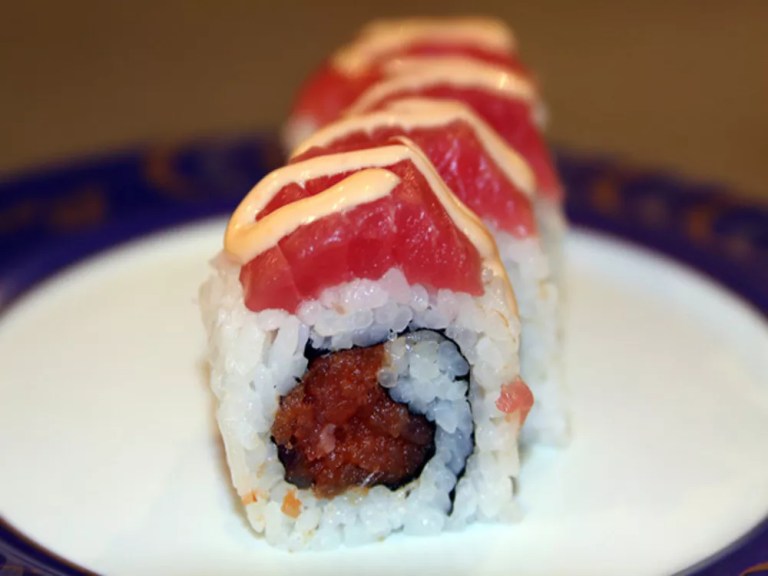 The exterior of Haru Sushi is deceptively fortress-like, but inside it’s spacious and cheerful, with a sprawling three-sided sushi bar surrounded by a sleek conveyor belt. Grab whatever strikes your fancy, or order directly from the compact menu of sushi standards. At the end of the meal, they tally your bill based on how many color-coded plates you’ve stacked up. Amazingly, you can eat a lot for very little dough.