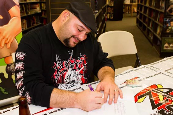 Danny Marianino signs copies of his book “Don’t Ever Punch a Rock Star” at Zia Records in 2012.