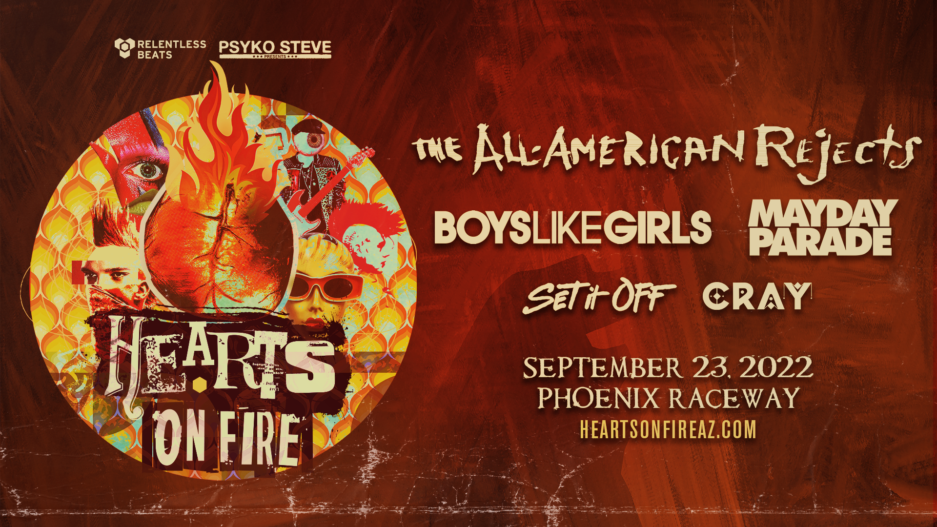 Co-presented by local promoters Relentless Beats and Pskyo Steve Presents, the all-ages Hearts on Fire festival will take place on Friday, September 23, at Phoenix Raceway, 7602 Jimmie Johnson Drive, Avondale.