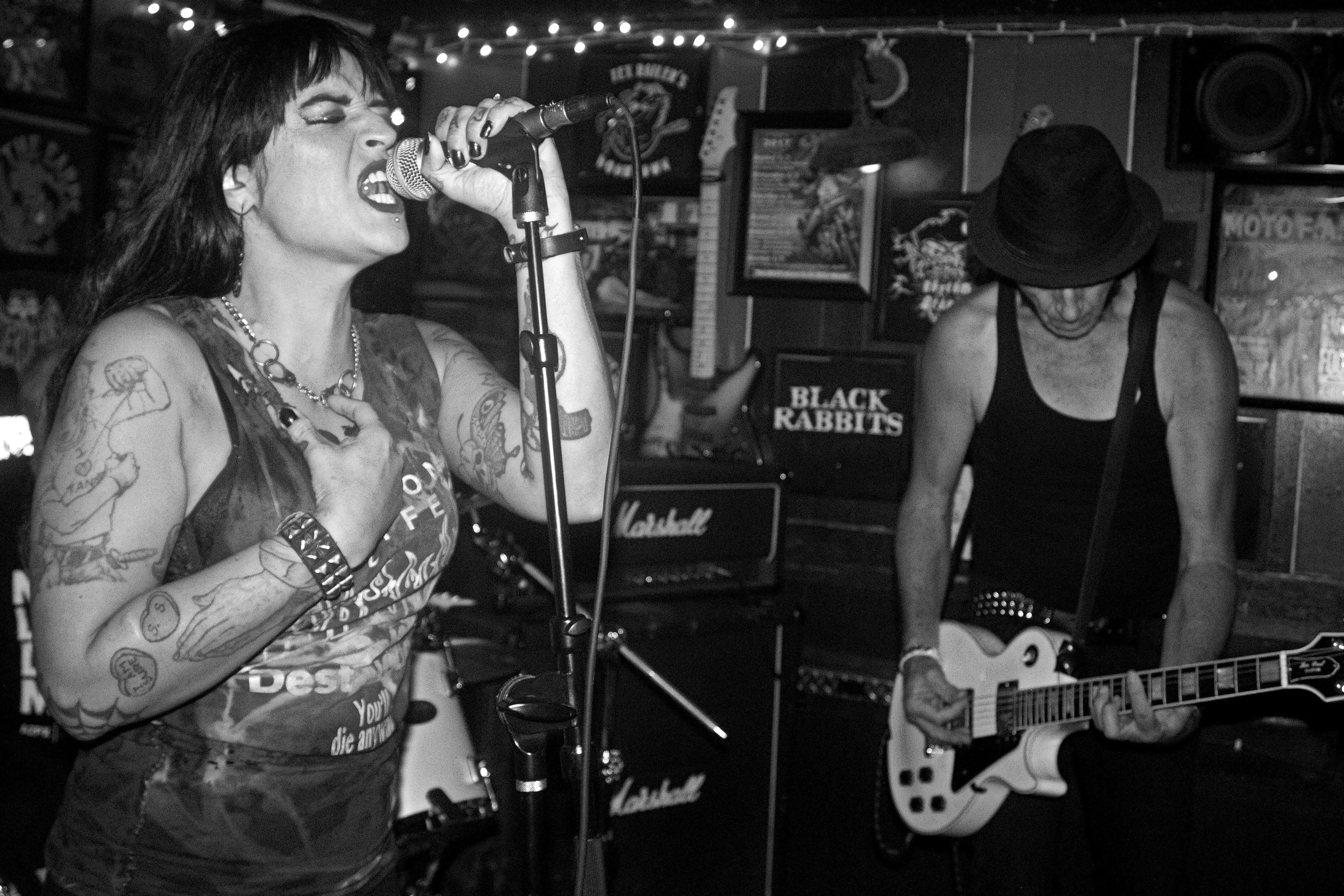 Sarah Shelton and her husband, Steve, tearing through one of The Brand’s tight punk rock songs.