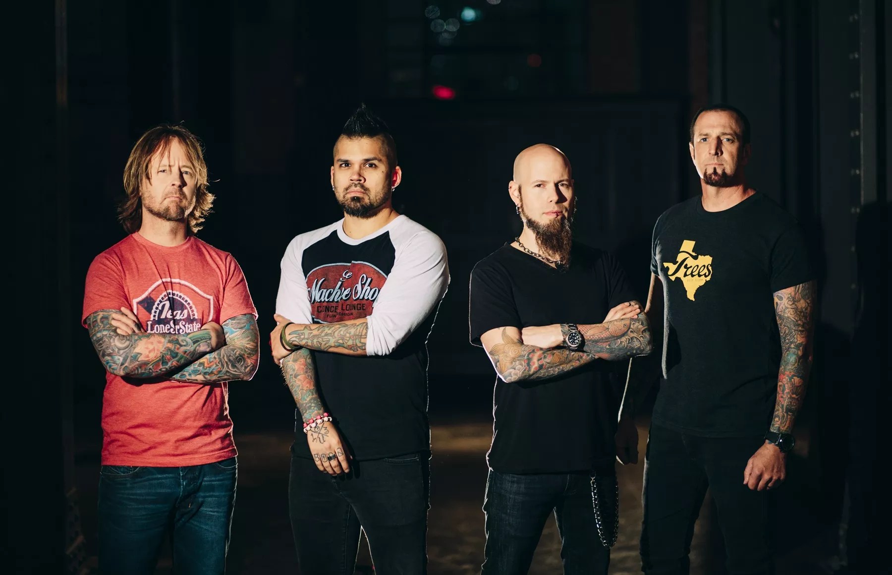 The current lineup of nu-metal act Drowning Pool.